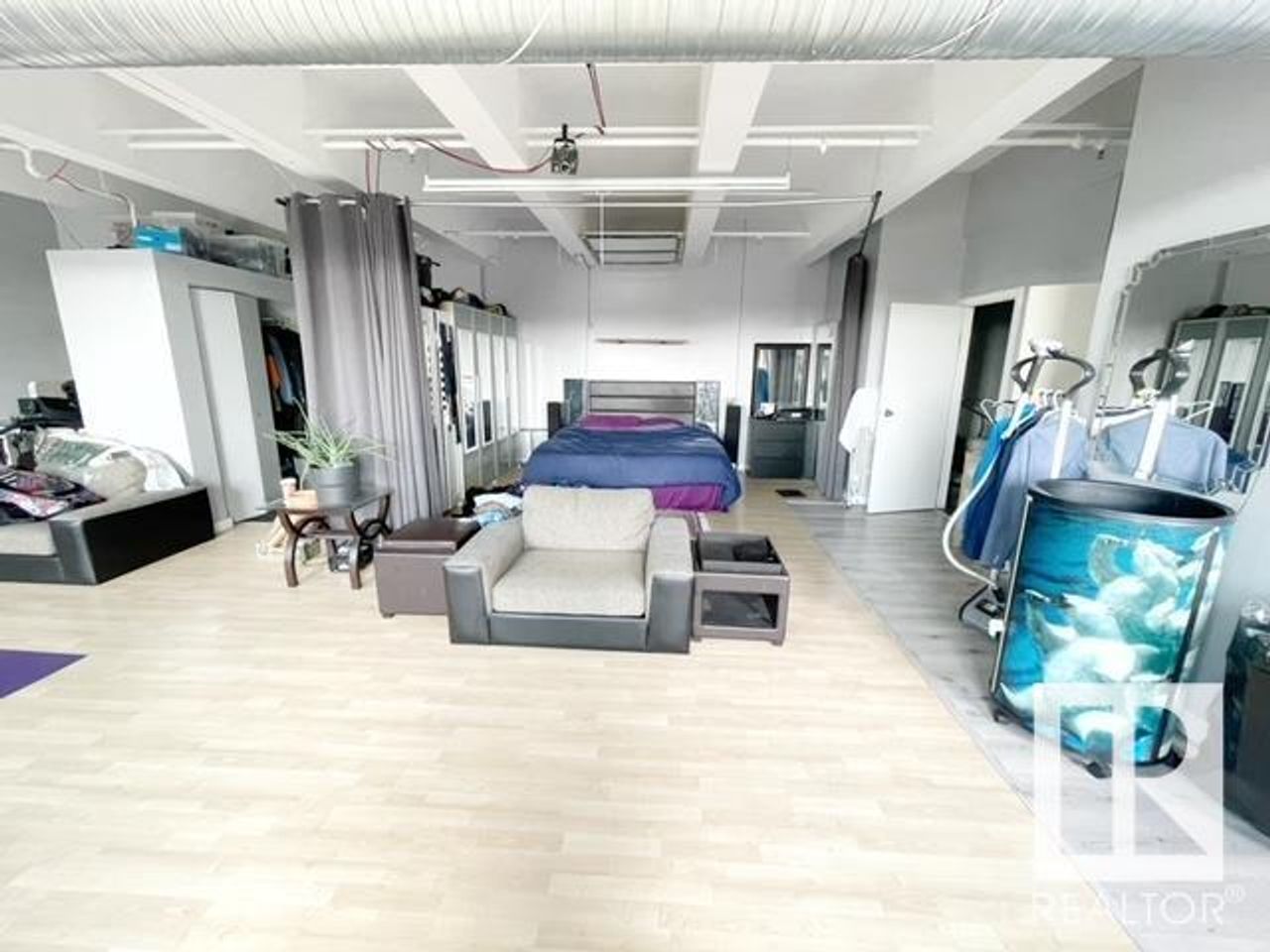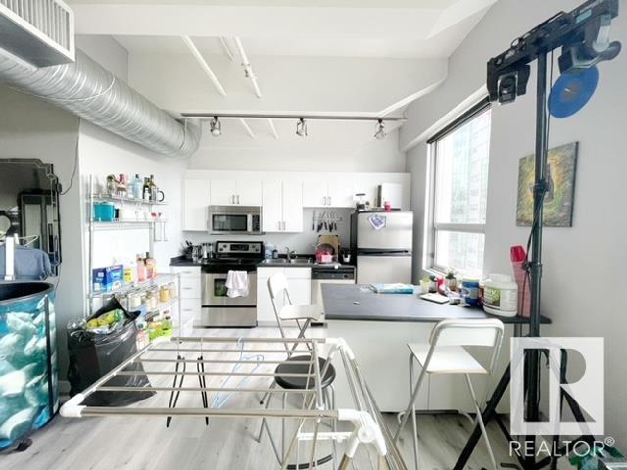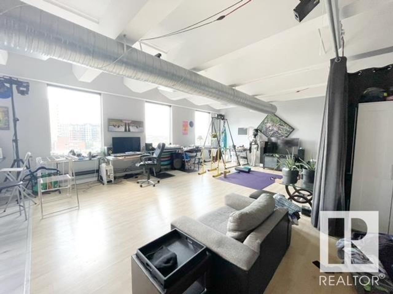 One of the Kind unit avilable in Downtown to call home. "The Executive" affords you lots of natural light with the floor to 10ft ceiling, windows, and western view. Comes with furniture. You will be impressed by the open concept island kitchen with appliances and great cupboard space. To relax and really enjoy your home, the living room is complete with leather couches, area rug, TV and surround sound. The bedroom has a large wardrobe giving you the feeling of a separate spac…e while still enjoying the lofty feel. There is also a space for a private office. Parking is available at Capital Centre right next door. With only one block to the LRT, Save-On-Foods and fancy restaurants across the street, and all furnishings, dishes, etc included there really is nothing left for you to do but move in.