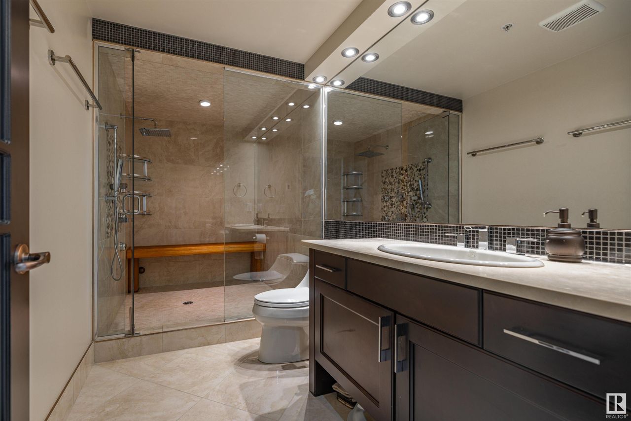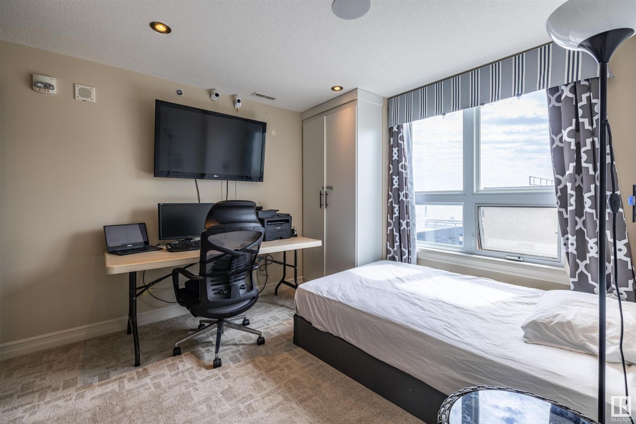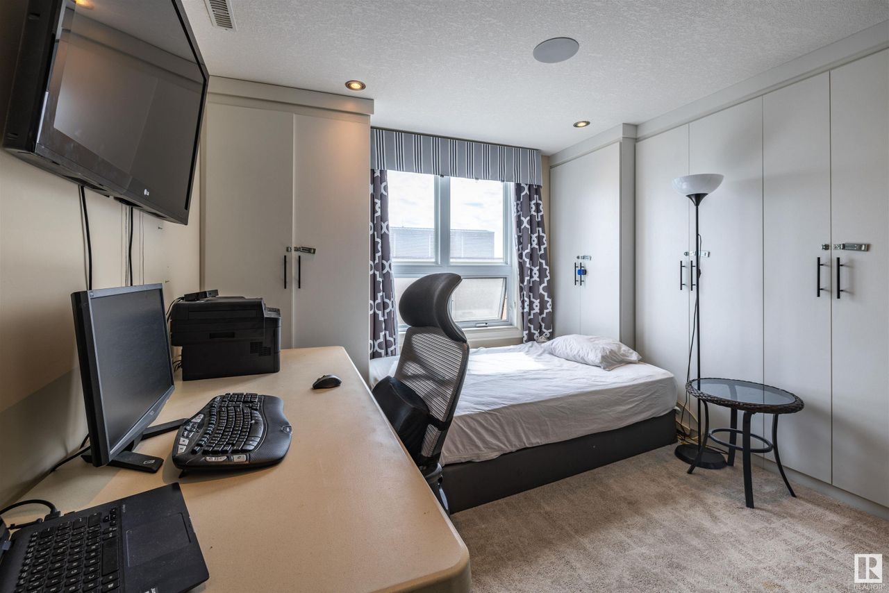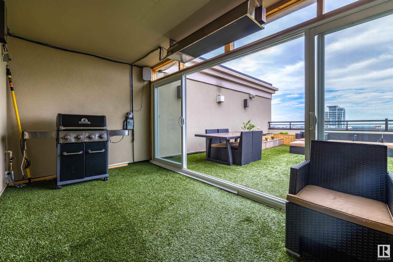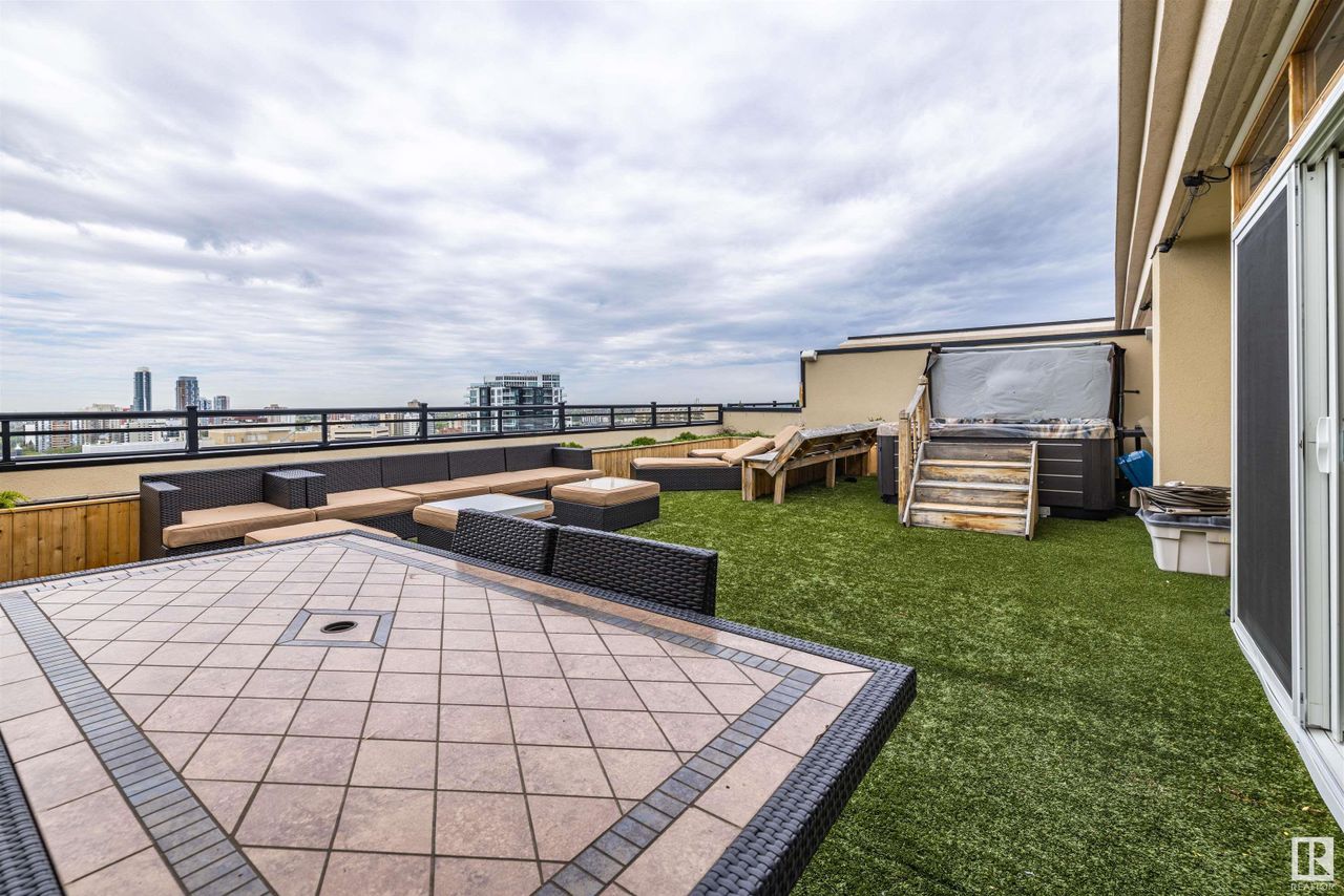 For your expansive views. Introducing an extraordinary two storey penthouse in downtown Edmonton. Perched atop the magnificent Parliament Condos is this well appointed residence that includes an incredible west facing outdoor space with a private hot tub. Inside the unit is a combination of exceptional millwork and large cuts of ceramic tiles. Beautiful dark tones set an elegant mood throughout. Enjoy 2 bedrooms on the main level, each with their own bathroom. The upper level… is an owner's retreat. A second private living room and work space that overlooks the main level living room and offers more exceptional views from every window. Beyond a set of double doors is the primary bedroom. This space presents an extensive amount of closet space combined with a spa like ensuite. Your elevated lifestyle is reimagined once you experience the private outdoor space for this residence. Unobstructed sunsets from your private hot tub and fully turfed patio space for your exclusive gatherings. Nothing Compares.