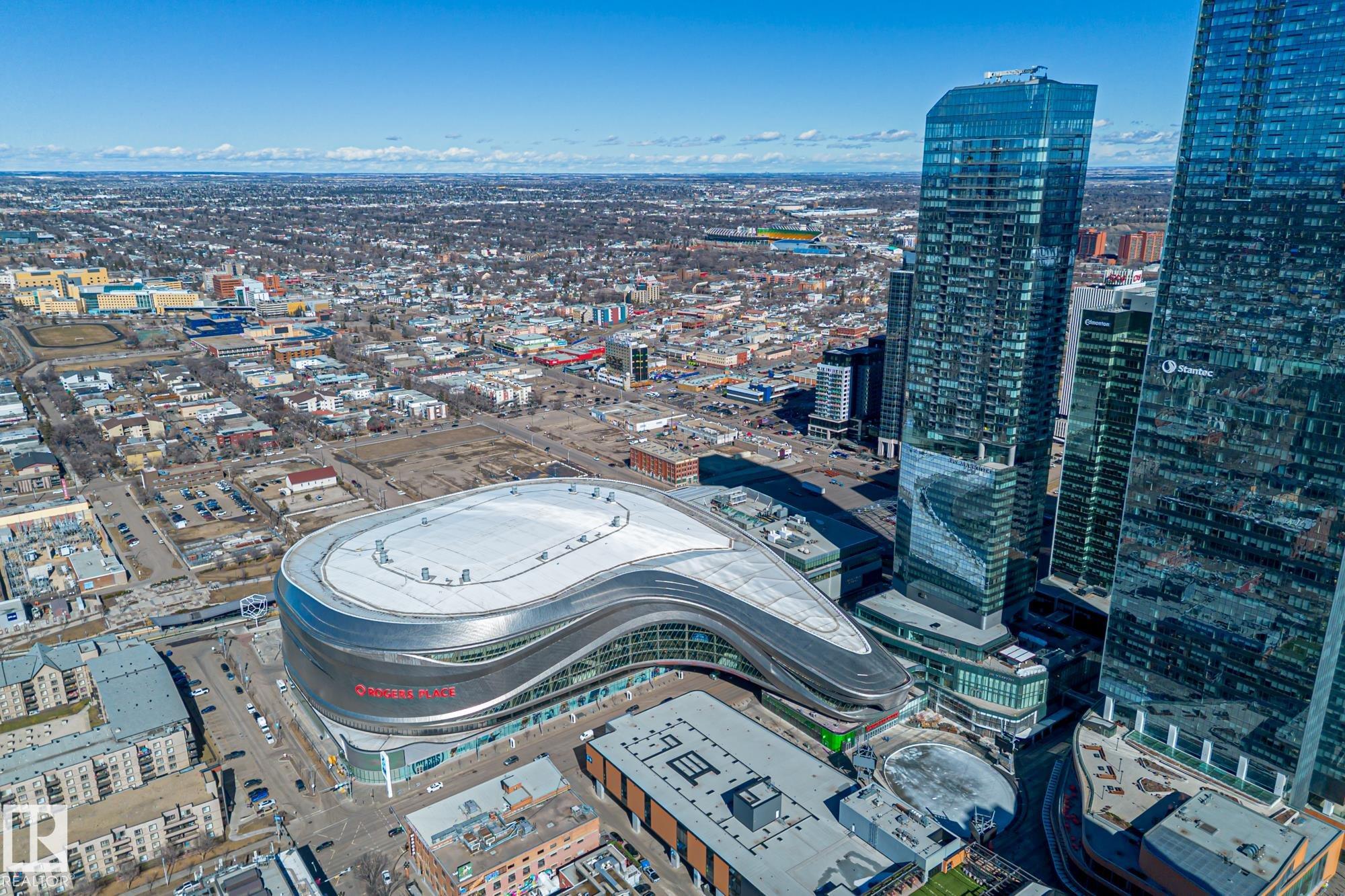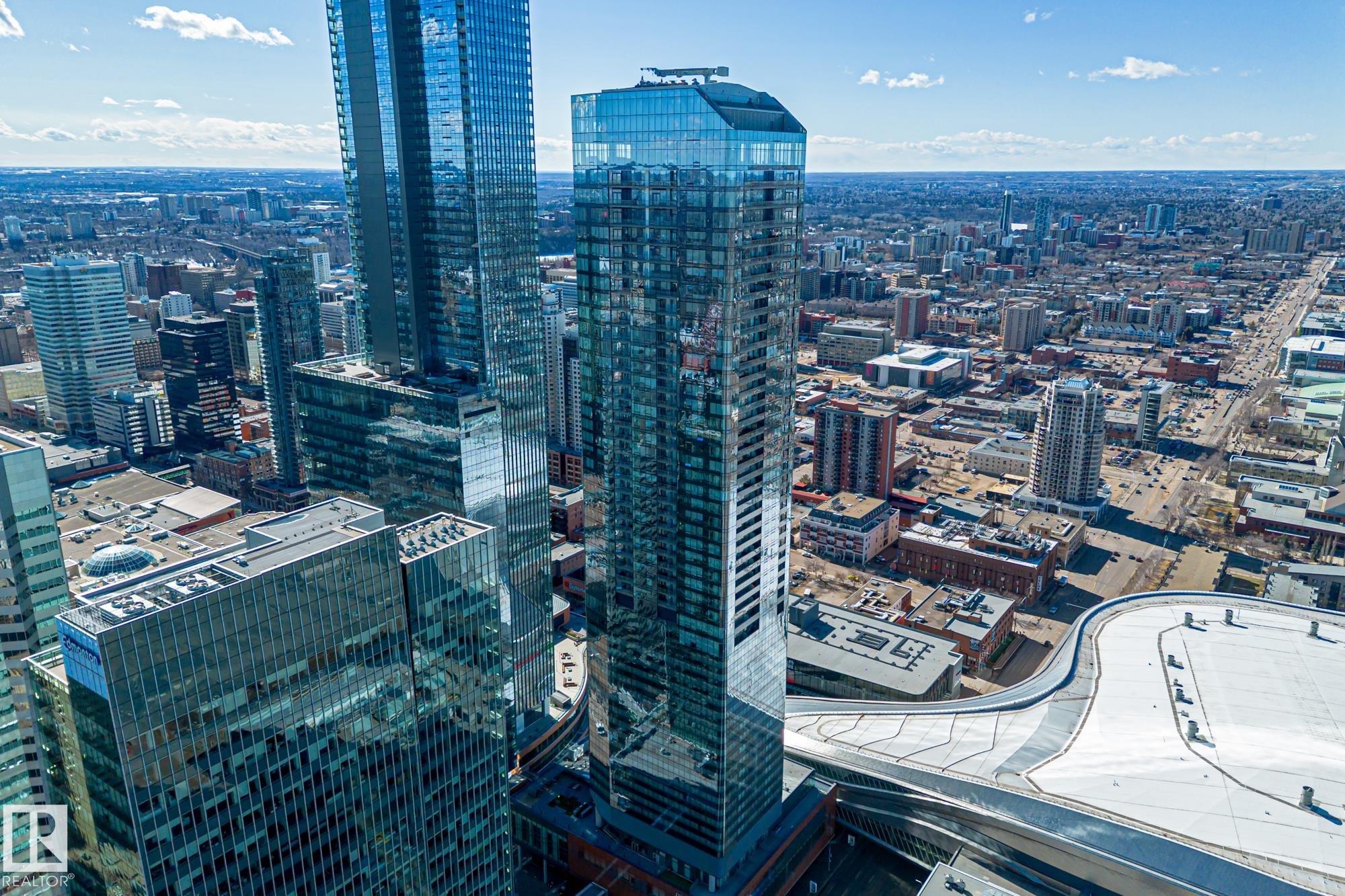 Amazing opportunity to own this fully furnished 52nd floor penthouse in Edmonton's most exclusive condo development, "The Legends Private Residences". This spacious & well-designed floorplan has over 3,300 sf of living space which extends to a 730 sf covered terrace. Expansive window walls throughout allows light to cascade through this incredible suite. 270 degree view! Premium features include; 10 ft ceilings, hardwood flooring, 2 primary bedrooms with ensuites, spacious den with wet bar, roomy office space, 2 & 1/2 baths, premium appliance package, power window coverings and much more!! 3 underground parking stalls & storage space included! Located in the heart of ICE District with a walk-indoor experience pedway directly to Rogers Place. World class JW Marriott shared facilities include; relaxing spa with indoor pool & steam room, ARCHETYPE fitness membership, 24/7 concierge & security, valet and dining services available. Truly a living experience that is unmatched in the City of Edmonton!