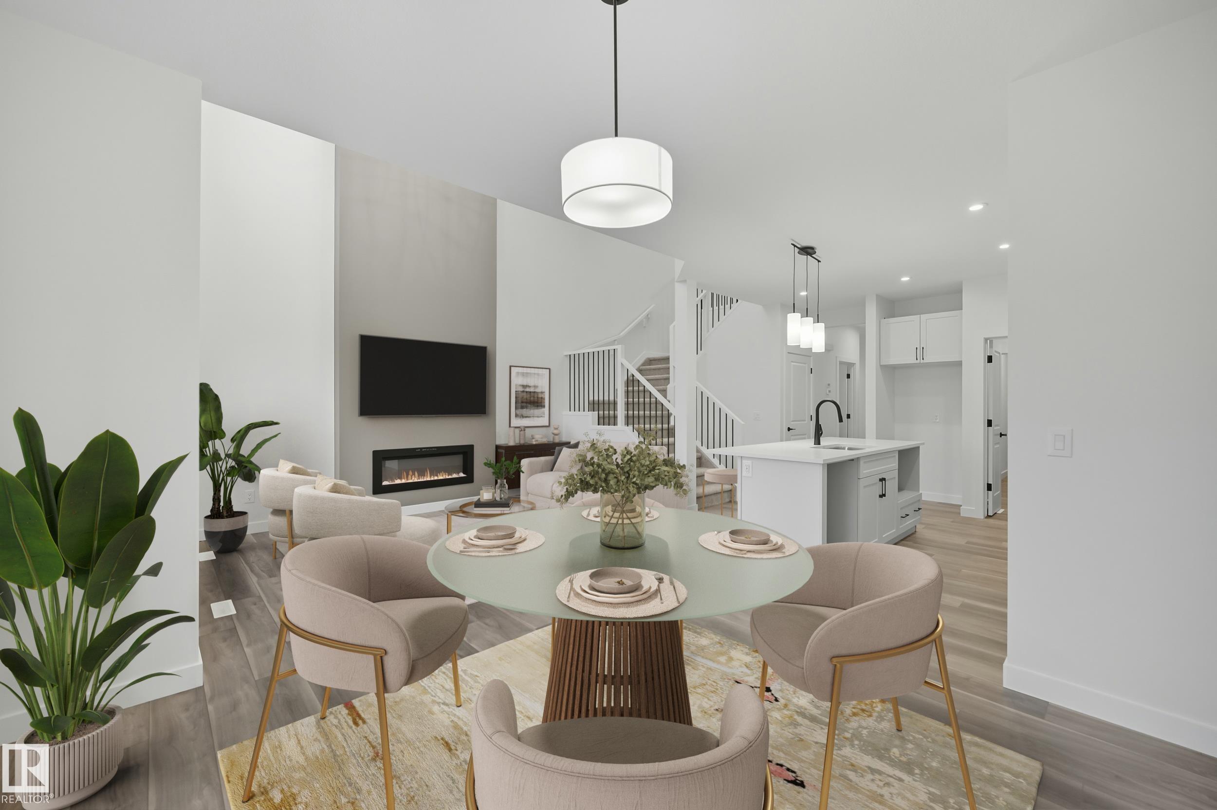 The Victor offers 2067sqft- built to support modern families with comfort, flexibility, & future potential. With a MAIN FLOOR BD/full bathroom, side entry, & stunning open-to-above great room, this home is move-in ready. Mainfloor with 9' ceilings delivers a spacious, connected layout where the kitchen, dining nook, & great room flow effortlessly together. Kitchen is beautifully finished with a flush eating ledge island, walk-in pantry, & quartz countertops throughout. Cozy fireplace adds warmth to the greatroom, while main floor bdrm/full bath offer ideal flexibility for guests, aging parents, or home office use. Side entrance creates a clear opportunity for future basement suite development or private access. Upstairs, central bonus room acts as the perfect hub for movie nights or playtime. Primary suite features walk-in closet/spa-style ensuite with dual sinks, drop-in tub, & separate shower. Two additional bedrooms each come with their own walk-in closet, built-in study nook & laundry room nearby.