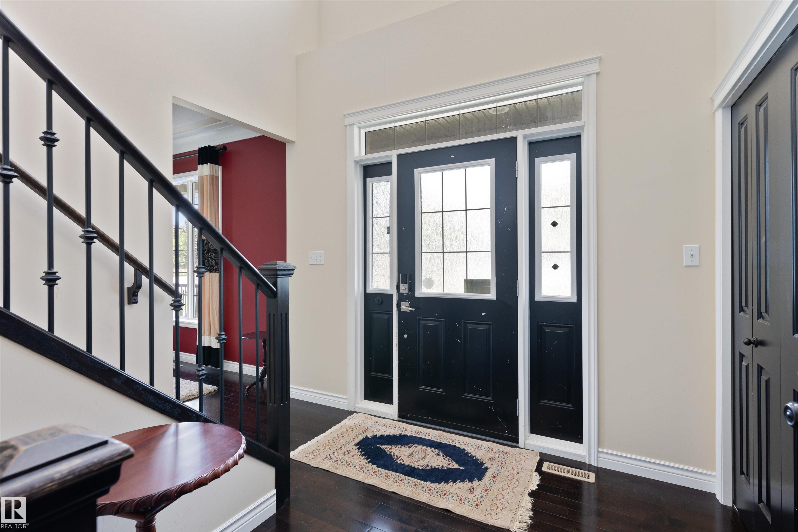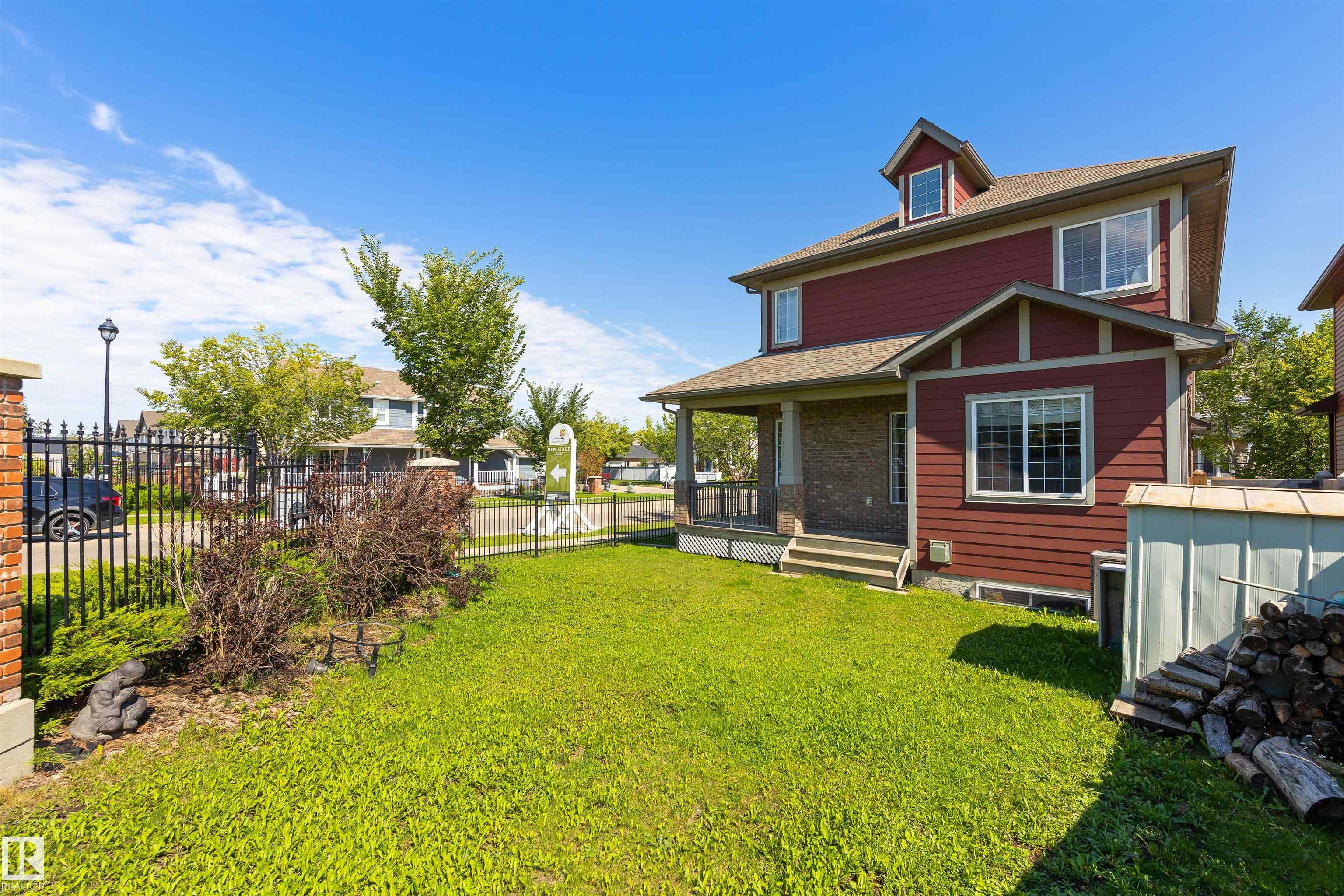 On a corner lot in Morinville, discover this charming 2 storey home with a stunning wrap around veranda. The 2 storey front entrance opens to the upper staircase. The living room has an open design to the dining room and kitchen. The dining room has access out to the backyard. The kitchen features an eating bar peninsula, walk thru pantry, tile backsplash, s/s appliances and tile flooring. The upper level has 3 generous sized bedrooms, a 4pce main bathroom and a 5pce ensuite.… The primary bedroom features a walk in closet. The FULLY FINISHED BASEMENT includes a family room with gas fireplace, 3pce bathroom, 4th bedroom and a mech/storage room. Upgrades to this home include crown molding in the living room, dark stained maple hardwood throughout most of the main floor, 9' CEILING HEIGHT on the main floor, CENTRAL A/C, HOT WATER TANK (2023) and SHINGLES (2023). A double attached OVERSIZED GARAGE completes this wonderful home!