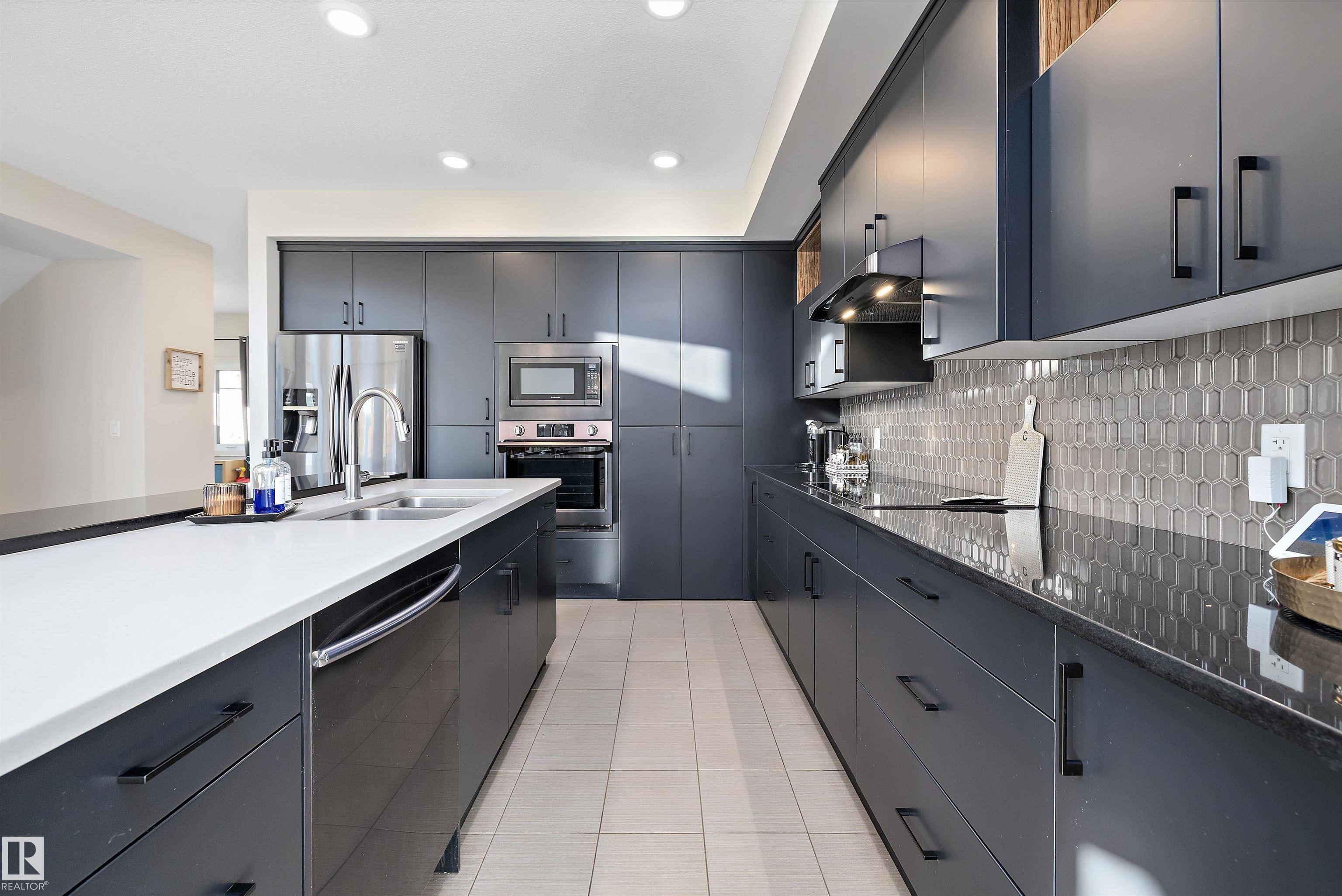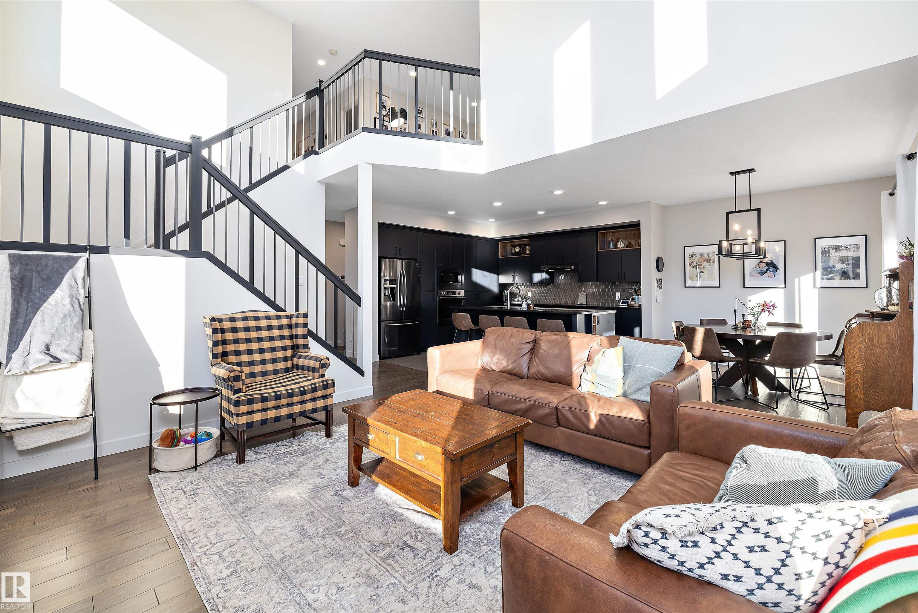 You will be impressed as soon as you drive up to this striking 2-story home boasting a stylish modern exterior profile with exposed aggregate concrete. The main floor opens to a bright den and convenient two-piece powder room off the garage mud room with built-in storage. A sleek modern kitchen with built-in appliances, including induction stove, flows into the dining area & stunning two-story great room with floor-to-ceiling windows and a cozy fireplace. The elegant stair…case leads to a spacious bonus room, 2 generous bdrms, UPSTAIRS LAUNDRY, a full bath, and a dreamy primary retreat with w/i closet and 5-piece ensuite. Being on a corner lot, this home offers an abundance of windows that fill the home with natural light. Complete with a double attached garage with epoxy flooring & a landscaped backyard. Offering A/C and gas outlet for Bbq. Located on the east side of Spruce Grove, just 15 min from Edmonton, & walking distance to Jubilee Park, this beautiful corner-lot home is ready for your family!