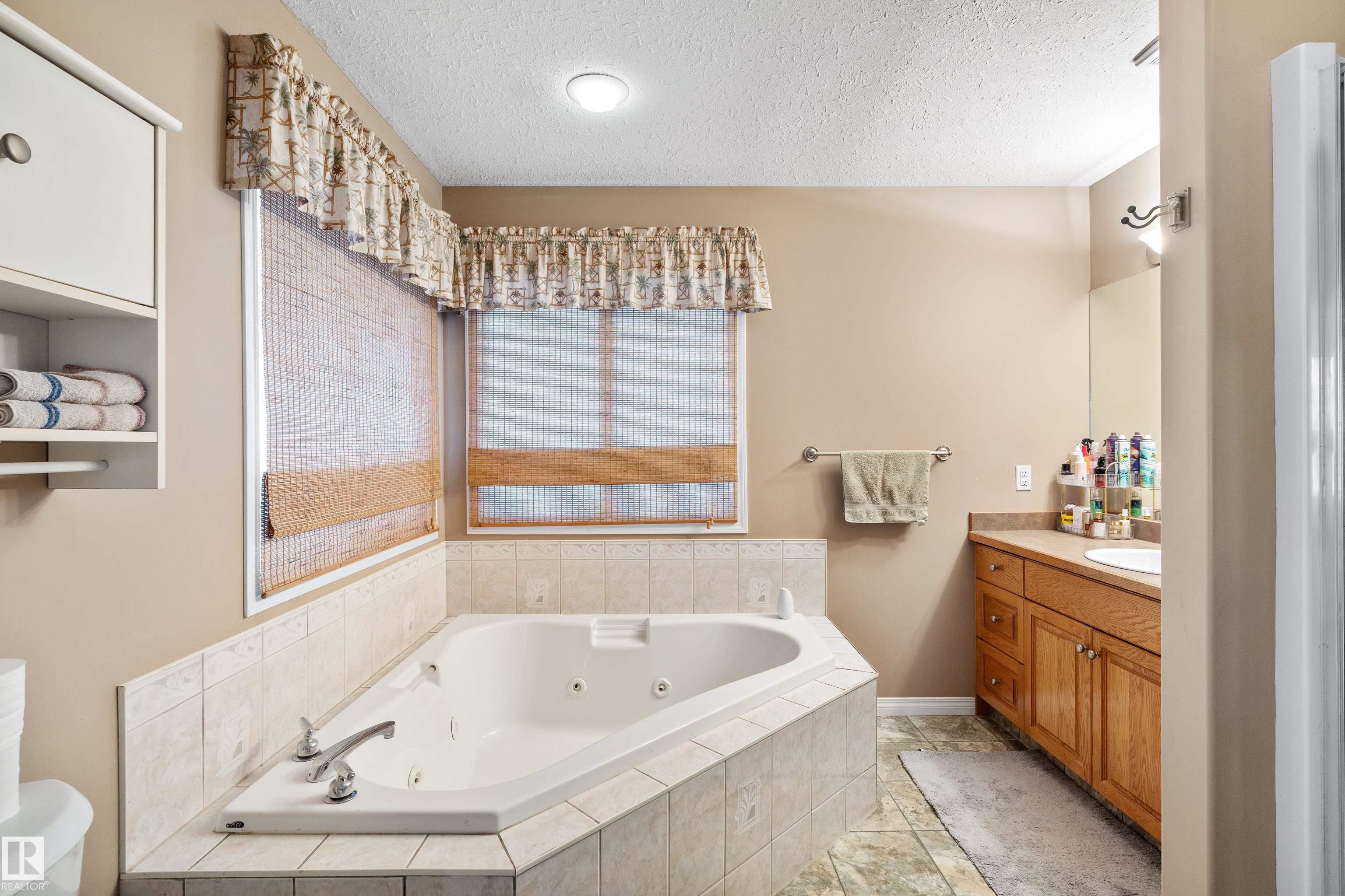 Beautiful 2005 Fully Finished Bi-Level in Morinville! Located in the desirable Notre Dame area, this spacious 5-bedroom plus den home offers the perfect blend of comfort and style. Featuring vaulted ceilings and an open-concept layout, the main living area feels bright and welcoming. The large primary suite includes a walk-in closet and private ensuite, providing a perfect retreat. Stay cool with central air conditioning and enjoy the comfort of a heated garage during winter months. The fully finished lower level offers plenty of additional living space for family or guests. Step outside to a two-level deck overlooking a landscaped yard with a cozy fire pit area—perfect for summer entertaining. Close to schools, parks, and walking trails, this home is ideal for families seeking space, warmth, and convenience. Move-in ready and well maintained.