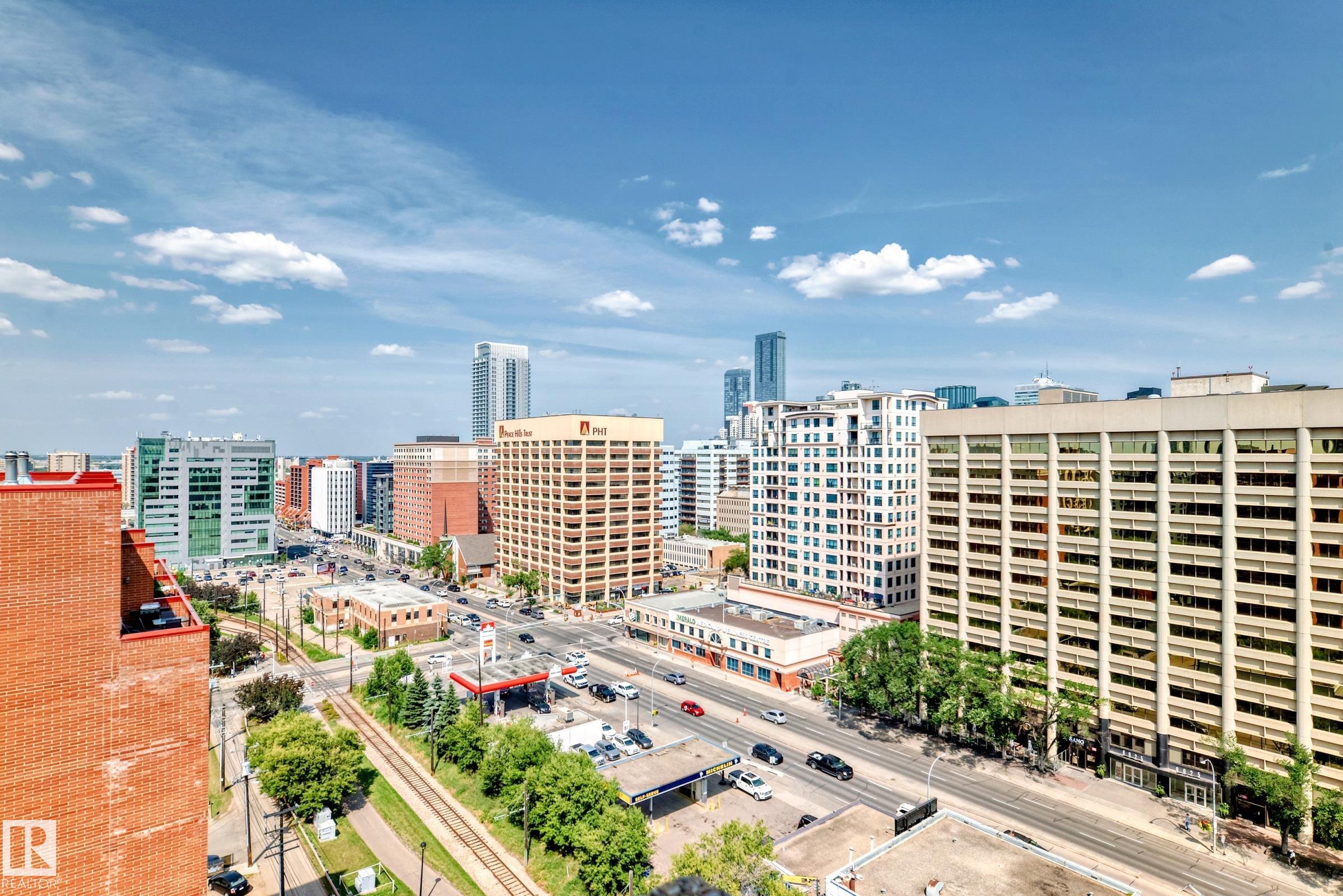 This newly-upgraded 3 bedroom, 2 full bath condo in Westcliff Arms offers fantastic views of the Legislature, city skyline, and Canada Day fireworks. This effectively managed, quiet concrete building only has 4 units per floor. This corner, 16th floor unit boasts beautiful dark flooring, upgraded kitchen cabinets, countertop, backsplash, appliances and paint. Bright and open with nearly 1100 sq ft featuring in-suite laundry, newer oversized patio door and all windows. Lots of storage in the unit, plus two extra storage cages in front of the 99-year leased underground parking, and a titled outdoor parking stall. Condo fees include heat, power, water/sewer and amenities: exercise room, party room, game room and saunas. Government Centre LRT station is right at your door, close to river valley, walking/bike paths, High Level streetcar, excellent restaurants, and much more. Perfect for families, investors, or students.