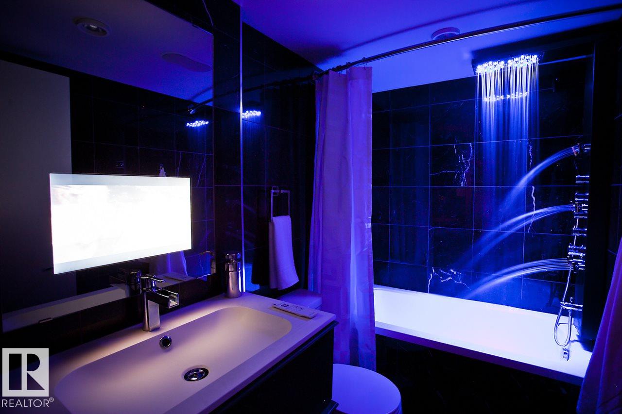 LUXURIOUS EXECUTIVE 732F 2 bedroom END UNIT in THE F15TEEN with east & west exposures with great light all day.  This modern CONCRETE building was completely renovated in 2010.  Premium Torlys leather flooring & tile in the kitchen & marble in the bathroom. The kitchen features glossy grey cabinetry, quartz countertops, BI fridge, dishwasher, BI oven, counter top stove, BI microwave, tile backsplash & breakfast bar. Primary bedroom is next to the main bathroom.  2nd bedroom h…as sliding double doors opening to the living room.  Spa-like bathroom with floor to ceiling marble tile, high end multi-jet shower with LED light panel & a built-in 19” bathroom mirror TV. Living room is outfitted with built-in speakers. Fob suite access. INSUITE WASHER & DRYER, A/C  2 ROOFTOP PATIOS, yoga & fitness room on PH level. One semi-covered parking stall with a 2nd available for $75/month. Close to transportation, the new LRT, restaurants, river valley trails & quick access to the Brewery & Ice Districts. Shows very well!