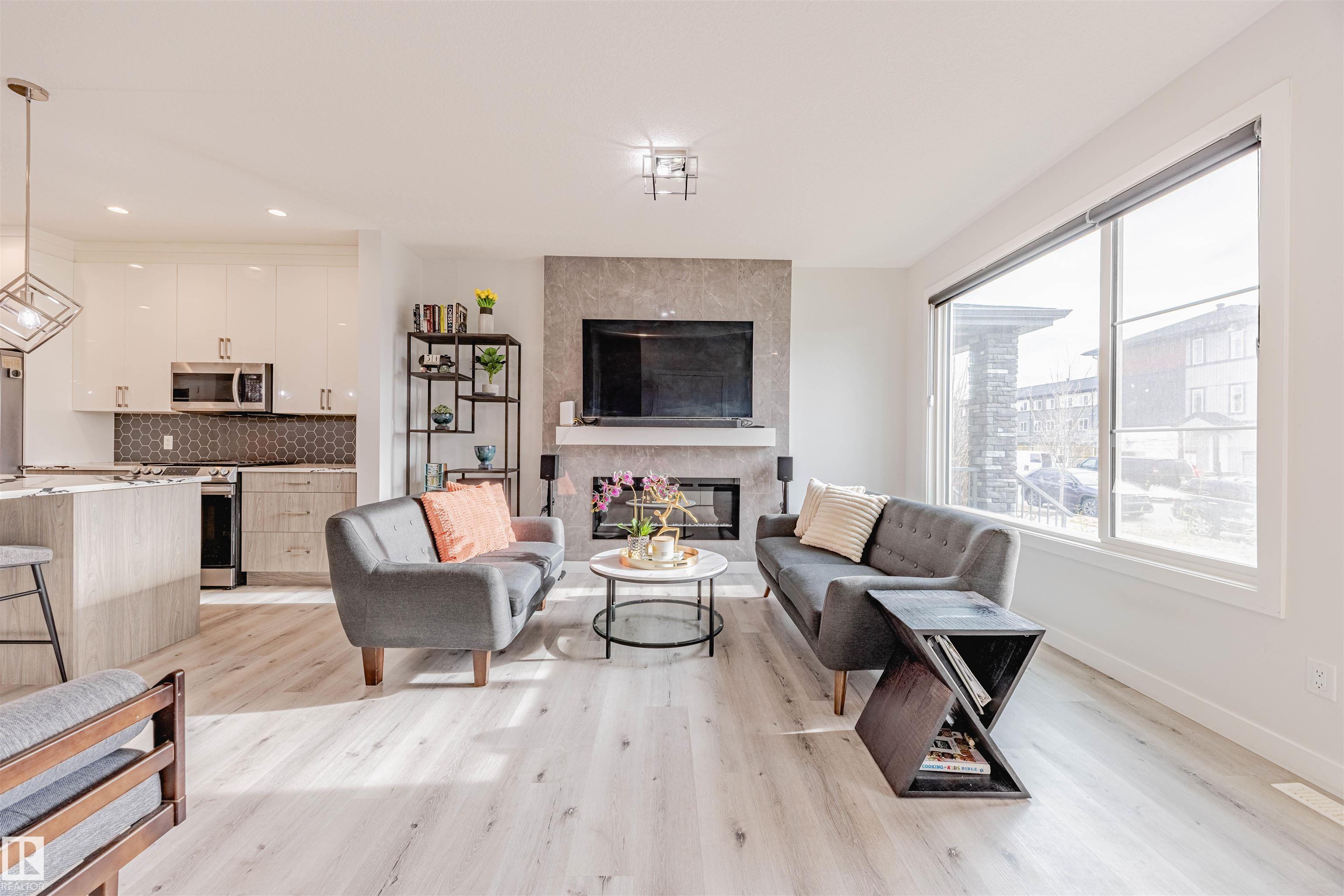 Welcome to this beautiful 2-storey single-family home with a double car garage in the highly sought-after Keswick community. The main floor offers a bright, open layout with a welcoming foyer, spacious living room with an electric fireplace, and stylish vinyl plank flooring throughout. The modern kitchen features white cabinetry, a gas stove, stainless steel appliances, a large island with extra seating, and access to a balcony. The dining area is perfect for family gathering…s, and a 2-piece bathroom completes the main level. Upstairs, the primary suite easily fits a king-size bed and includes a walk-in closet, private 4-piece ensuite, and its own balcony. Two additional bedrooms share another full 4-piece bath. The upper level also offers a laundry room with a washer and dryer and a versatile bonus room. The fully finished basement with side entrance includes a family room, bedroom, and 4-piece bath. Close to schools, parks, shopping, and minutes to Edmonton International Airport.