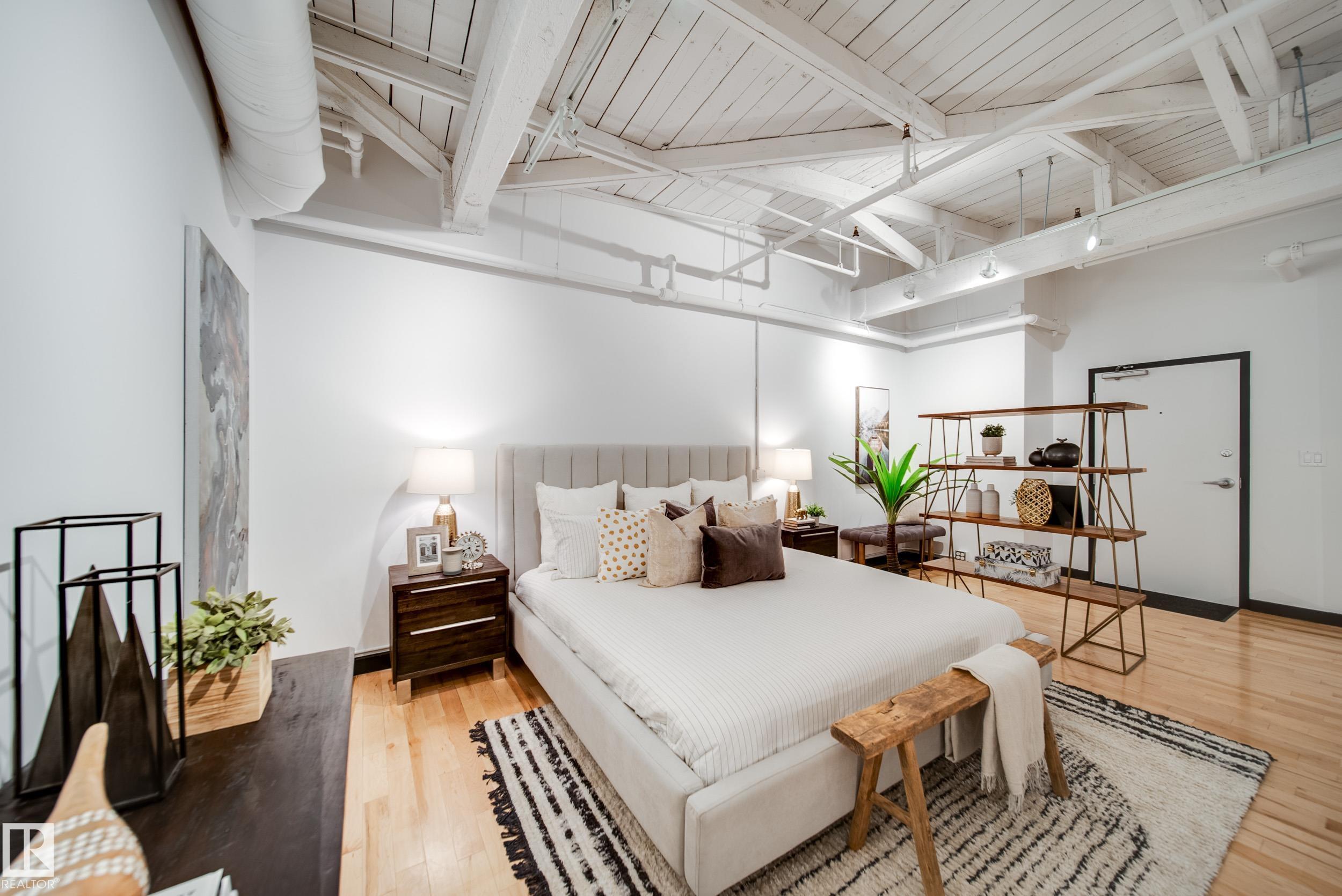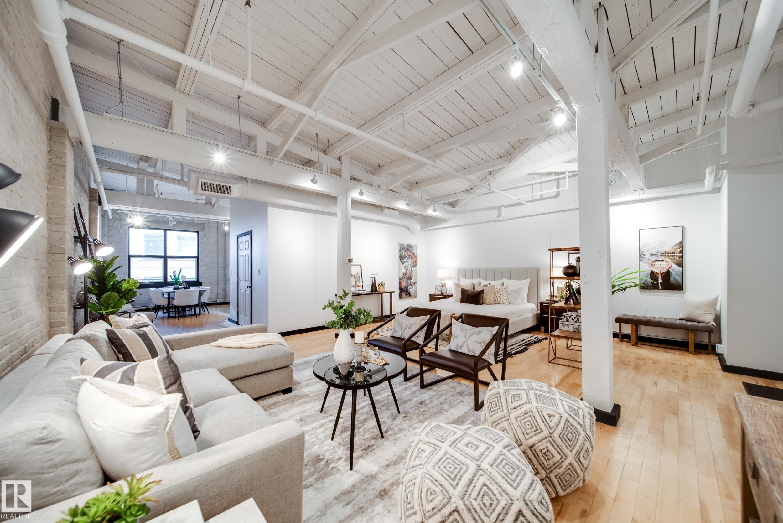 PHILLIPS LOFTS, EDMONTON’S PREMIER LOFT BUILDING, PRESENTS ONE OF THE FINEST UNITS TO HIT THE MARKET! This New York-style loft, steeped in history, is located in the heart of the warehouse district—ideal for those seeking an urban lifestyle with walkability, entertainment, restaurants, and just steps to Rogers Place. Situated on the top floor, this fully renovated unit boasts 13' ceilings and original beams that are over 100 years old. Every inch of this space has bee…n updated with high-quality renovations, including a brand-new bathroom and kitchen featuring custom cabinetry, tile work, appliances, plumbing, and counters. The large bedroom area, dining space, and dedicated home office make it a perfect fit for modern living. Few units offer a balcony, but this one does! With central AC, pet-friendly policies, and access to a rooftop patio, this lock-and-leave property is an entertainer's dream. Don’t miss out!