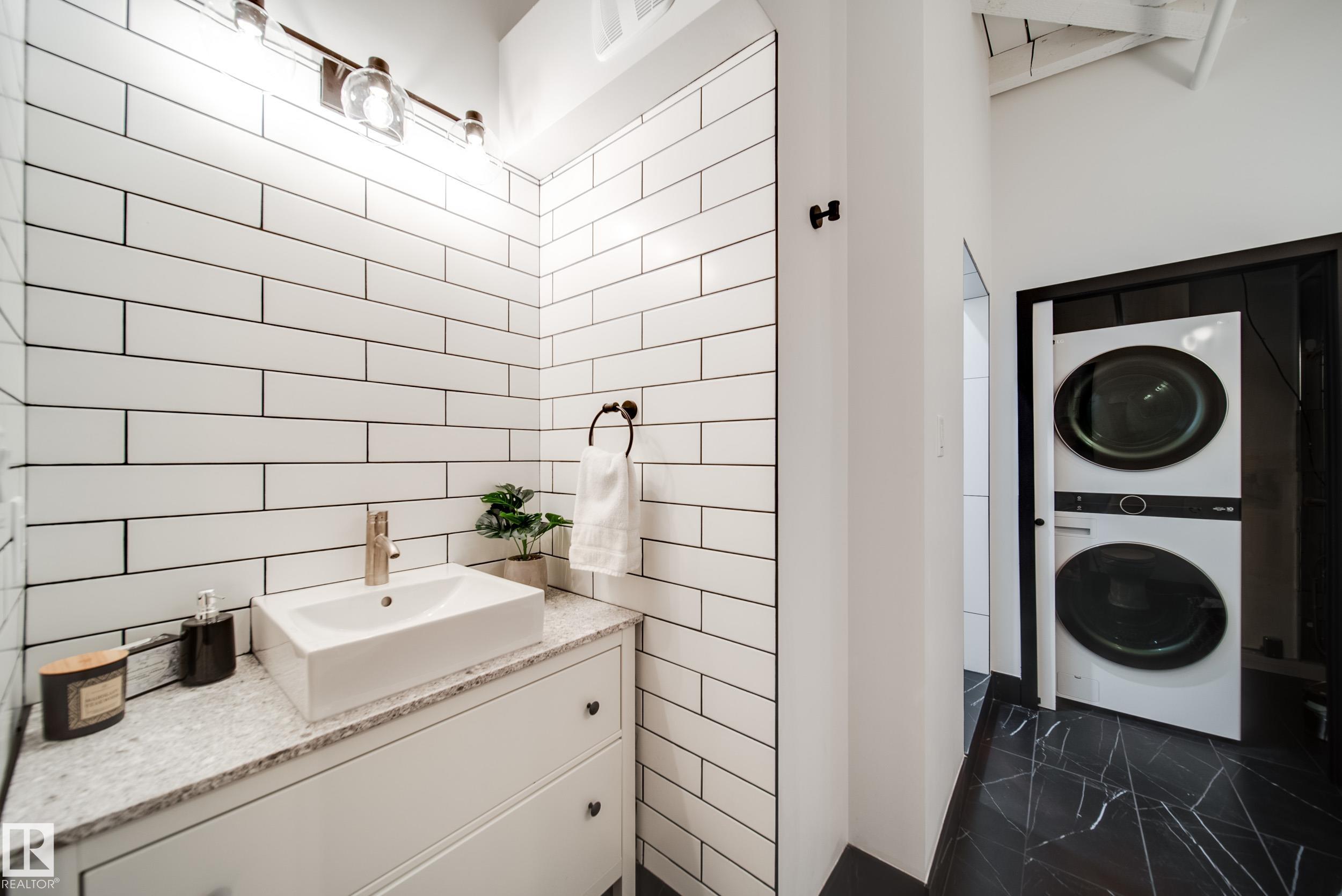 PHILLIPS LOFTS, EDMONTON’S PREMIER LOFT BUILDING, PRESENTS ONE OF THE FINEST UNITS TO HIT THE MARKET! This New York-style loft, steeped in history, is located in the heart of the warehouse district—ideal for those seeking an urban lifestyle with walkability, entertainment, restaurants, and just steps to Rogers Place. Situated on the top floor, this fully renovated unit boasts 13' ceilings and original beams that are over 100 years old. Every inch of this space has been updated with high-quality renovations, including a brand-new bathroom and kitchen featuring custom cabinetry, tile work, appliances, plumbing, and counters. The large bedroom area, dining space, and dedicated home office make it a perfect fit for modern living. Few units offer a balcony, but this one does! With central AC, pet-friendly policies, and access to a rooftop patio, this lock-and-leave property is an entertainer's dream. Don’t miss out!