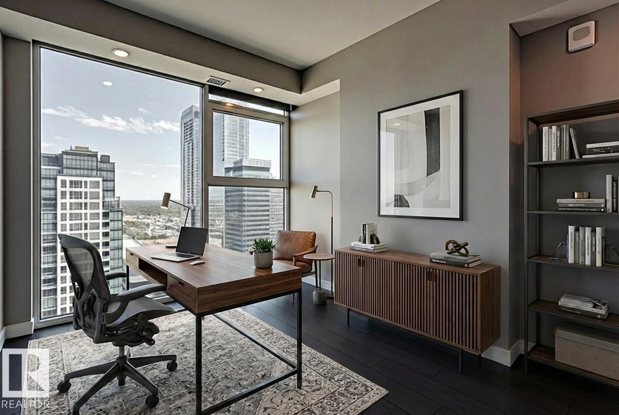 Location, Location! Encore Tower - Modern 2 Bedroom, 2 Full Bathroom Corner Suite with some of the best high-floor Downtown views the city has to offer! Enjoy true floor-to-ceiling windows, an efficient split-bedroom design and private sheltered balcony with plenty of morning sunshine. Appreciate durable finishes throughout - sleek quartz counters, plank-style floors bright and tidy tub-surrounds and neutral roller shades (w/ black-out shades in bedrooms). Modern design incl…udes a stylish kitchen with full-size stainless steel appliances, a spacious island with seating, 9-foot ceilings* and in-suite laundry (full-size). Life at Encore includes many conveniences - friendly concierge, an inviting party-room, 4th floor sundeck and a private fitness room. Did we mention steps from ICE District, numerous dining choices, and an al fresco market?... Do not miss this opportunity at the city's ultimate central location, and best new-construction value! **Photos are virtually staged**
