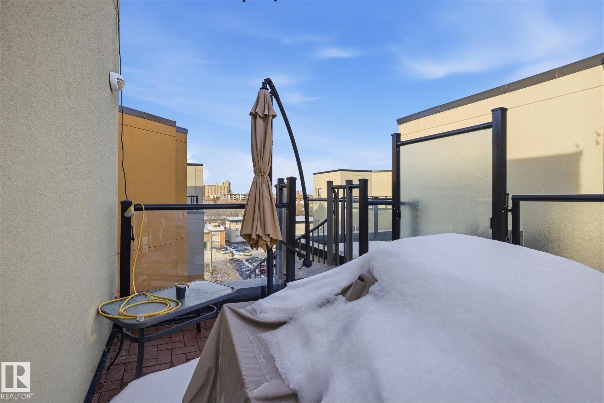 Welcome to this stunning TOP-FLOOR condo featuring a cozy living room with fireplace and balcony doors leading to a rare two-level balcony! The open-concept layout features an expansive living room, kitchen with island, MASSIVE 19 foot ceilings and large windows providing an abundance of natural light. Fully equipped with A/C, IN-SUITE LAUNDRY and underground parking! Conveniently located close to shopping, dining, transit, and everyday amenities. This unit with city views an…d incredible patio space, is sure to wow you!