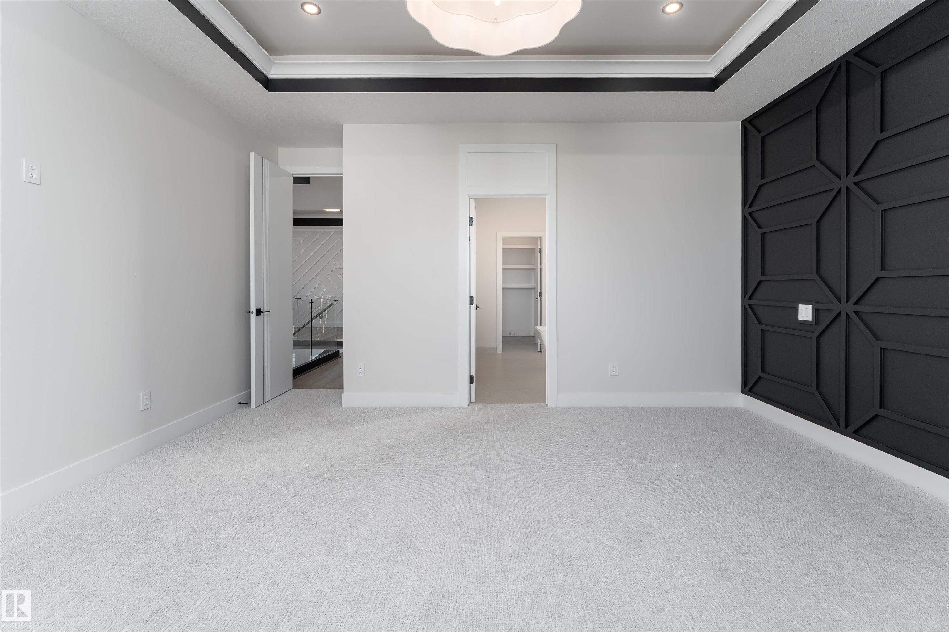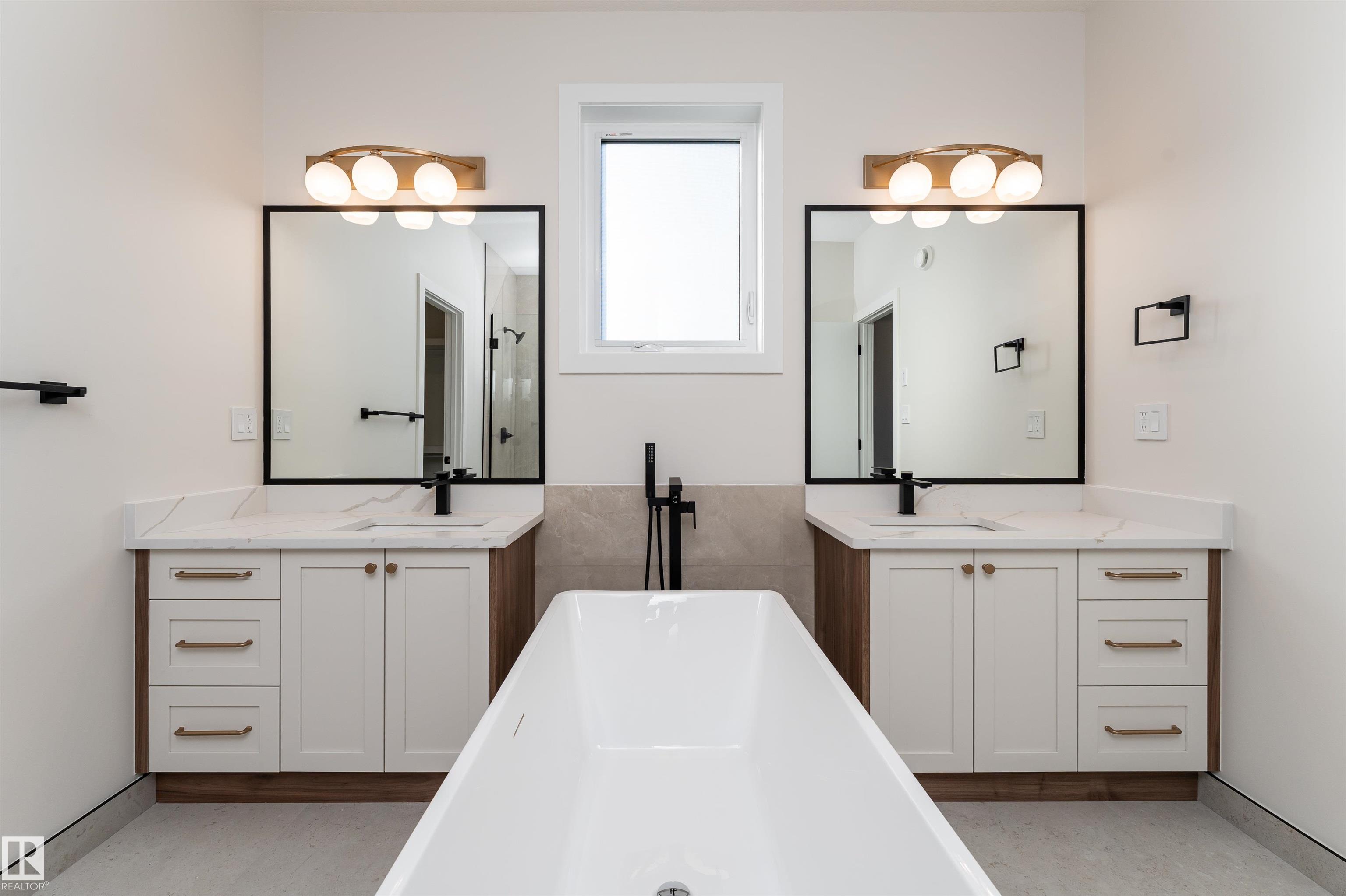 Designed to impress from the moment you arrive, this 2,935 sq ft east-facing residence offers elevated finishes, soaring open-to-below ceilings, and exceptional space for modern family living. The bright main living area features a stunning fireplace, accent walls and ceilings, statement lighting, and expansive windows that fill the home with natural sunlight. The kitchen includes stainless steel appliances, white cabinetry, a spacious island, engineered wood flooring, and a …fully equipped spice kitchen. A main-floor bedroom with a full bath provides flexibility for guests or multi-generational living. Upstairs features four spacious bedrooms, including a primary bedroom with a spa-inspired 5-piece ensuite, a second bedroom with its own ensuite, and a Jack and Jill bathroom, along with generous closet space and convenient upper-level laundry. The unfinished basement offers high ceilings and a separate entrance, creating excellent future potential in this thoughtfully designed, light-filled home.
