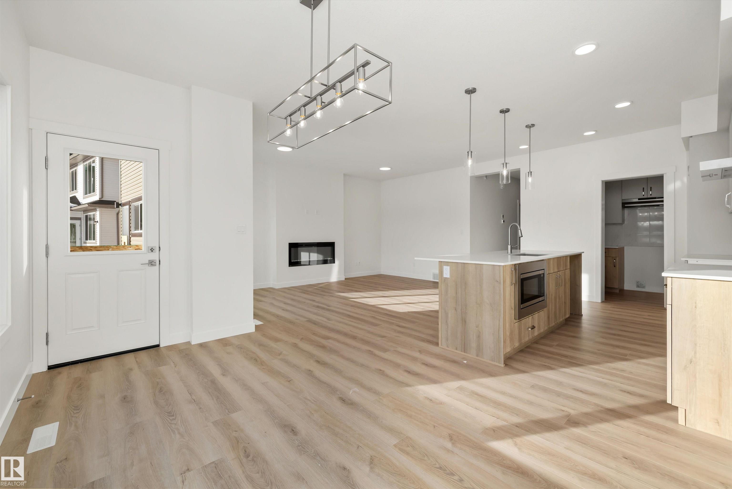 The Accolade is a well-designed family home featuring a double attached garage, separate side entrance, 9’ ceilings on the main and basement levels, and luxury vinyl plank flooring on the main floor. A bright foyer with coat closet connects to a mudroom and powder room, while a main-floor den with walk-in closet leads into the open-concept kitchen, dining nook, and great room. The kitchen offers quartz countertops, an island with eating ledge and built-in microwave, und…ermount composite sink, chimney-style hood fan, soft-close cabinetry, and a dedicated spice kitchen. The great room features an electric fireplace, large windows, and garden door to the backyard. Upstairs includes a primary suite with walk-in closet and 5-piece ensuite, plus a bonus room, upper laundry, a main 3-piece bath, and three additional bedrooms. Brushed nickel fixtures, basement rough-in, and Sterling Signature Specifications are included.