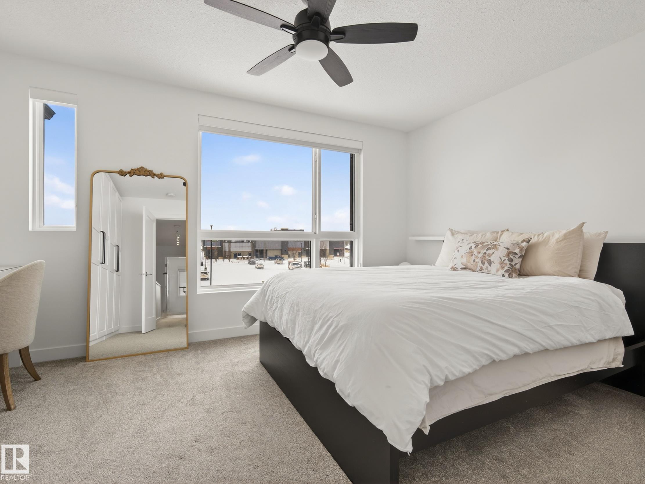 Welcome to CoBalt Beach—an exclusive boutique enclave crafted by Sarasota Homes, just steps from the beach at Jensen Lakes in St. Albert. This sophisticated 3 bedroom/4 bathroom residence showcases refined designer finishes including airy 9' ceilings, European longboard flooring, and expansive windows that fill the home with natural light. The entry level offers a versatile front den or bedroom, elegant 4-piece bath with in-floor heating, and convenient access to the attached garage. Upstairs, the open-concept AIR-CONDITIONED living space unfolds into a stunning great room with sliding doors leading to an oversized patio. The chef-inspired kitchen features stainless steel appliances, custom cabinetry, crisp white quartz countertops, and a large island overlooking the dining space—perfect for entertaining. The upper level hosts two oversized primary suites, each with spa-like ensuites, plus convenient upstairs laundry. Enjoy a vibrant lakeside lifestyle steps from the beach, schools, and local eateries.