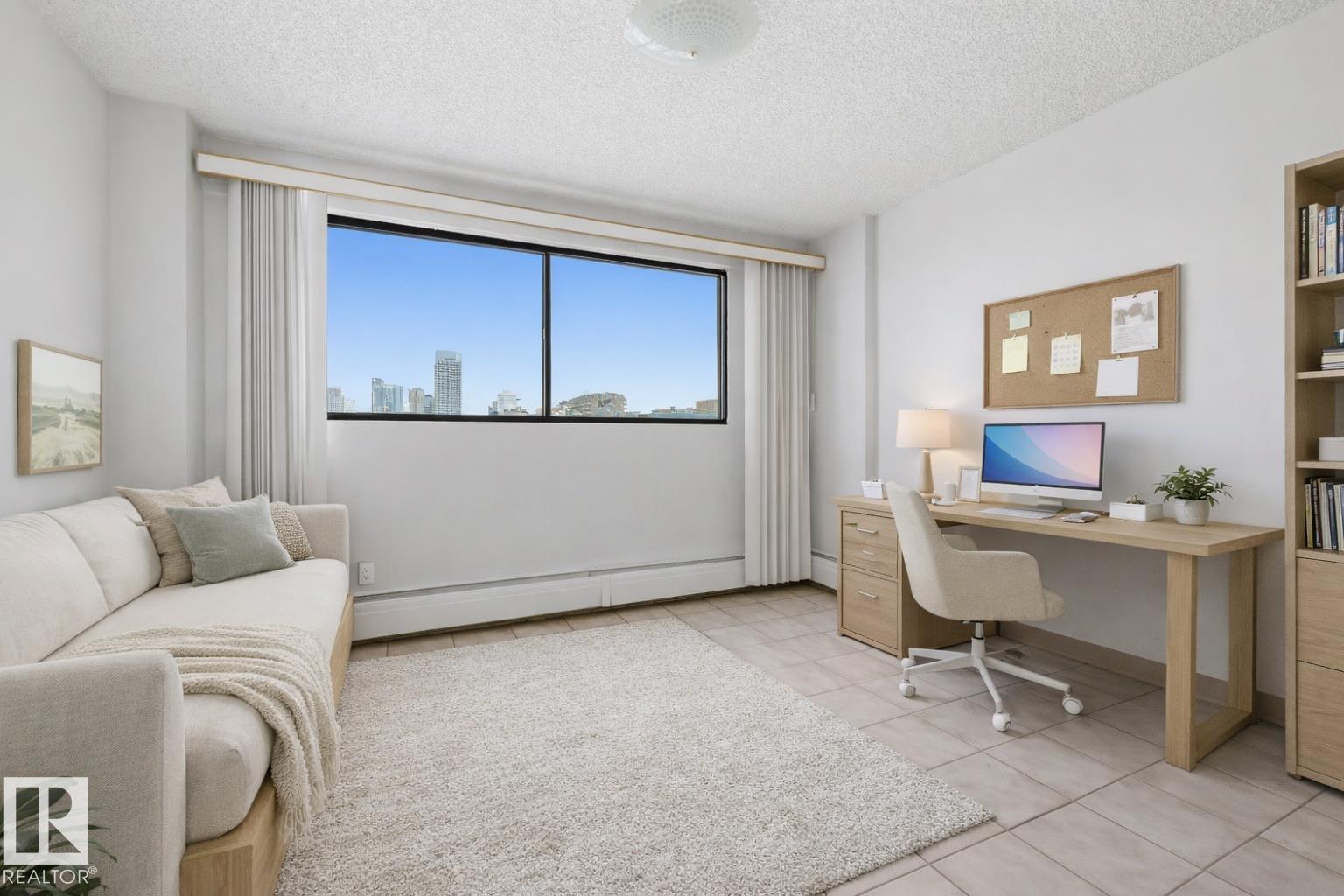 YOUR DOWNTOWN LIFESTYLE AWAITS! This spacious 2 bedroom & 1 bath concrete 8th floor condo in the B & H Tower is perfect for students, professionals or couples. Main features are: 1,128 sq.ft. of living space, large living room, efficient galley kitchen and generous dining area with sliding doors to a fully enclosed balcony with an awesome view of Downtown! Extra bonus: sink in the primary bedroom, easy care flooring throughout, in-suite laundry, visitor parking and extra s…torage. You will enjoy an underground parking stall and ALL utilities which are included in condo fees. This fantastic location will be your epicenter to Brewery District, Rogers Place and the Downtown core with all the shops, galleries and fine dining. Quick access to Grant MacEwan, U of A and NAIT via ETS and LRT. Note: some photos have been virtually staged. MOVE IN READY WITH QUICK POSSESSION!