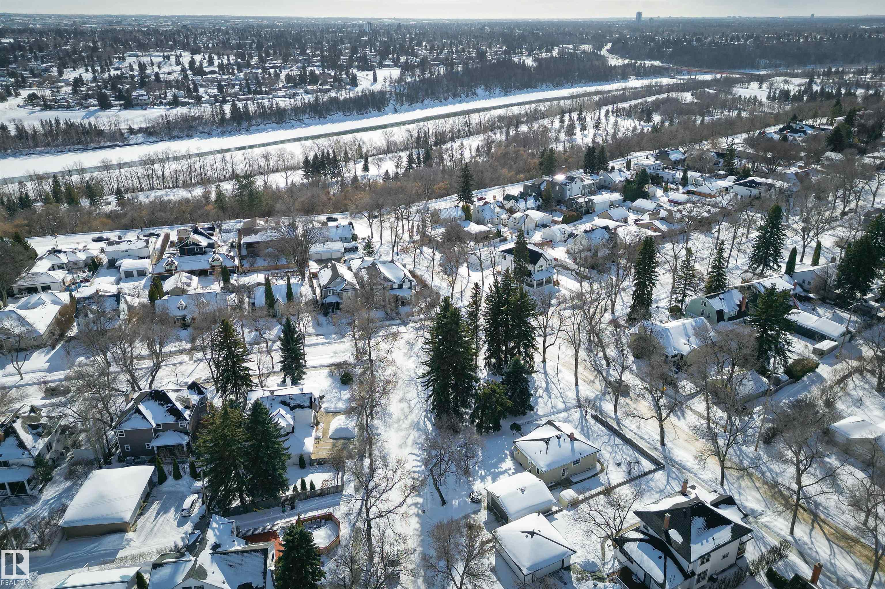 Located in the sought-after Highlands community and facing a beautiful green space, this charming 933 SF bungalow is full of character and timeless appeal. Rich hardwood floors, classic archways, and large corner windows fill the home with warmth and natural light. The spacious living room features a cozy fireplace and flows into the dining area. The bright kitchen offers newer stainless steel appliances, tile backsplash, ample cabinetry, and access to your private backyard. …The primary bedroom provides a quiet retreat with generous closet space, plus a second bedroom and 4-pc bath complete the main level. The basement offers a large family room, laundry, storage, and a convenient powder room. Set on a spacious corner lot with a double detached garage. Just one block from Ada Blvd and steps to Edmonton’s stunning River Valley, with easy access to golf, schools, shopping, transit and more. Building has a Restrictive Covenant, limited to Single Family & one Secondary Suite. Some photos virtually staged.