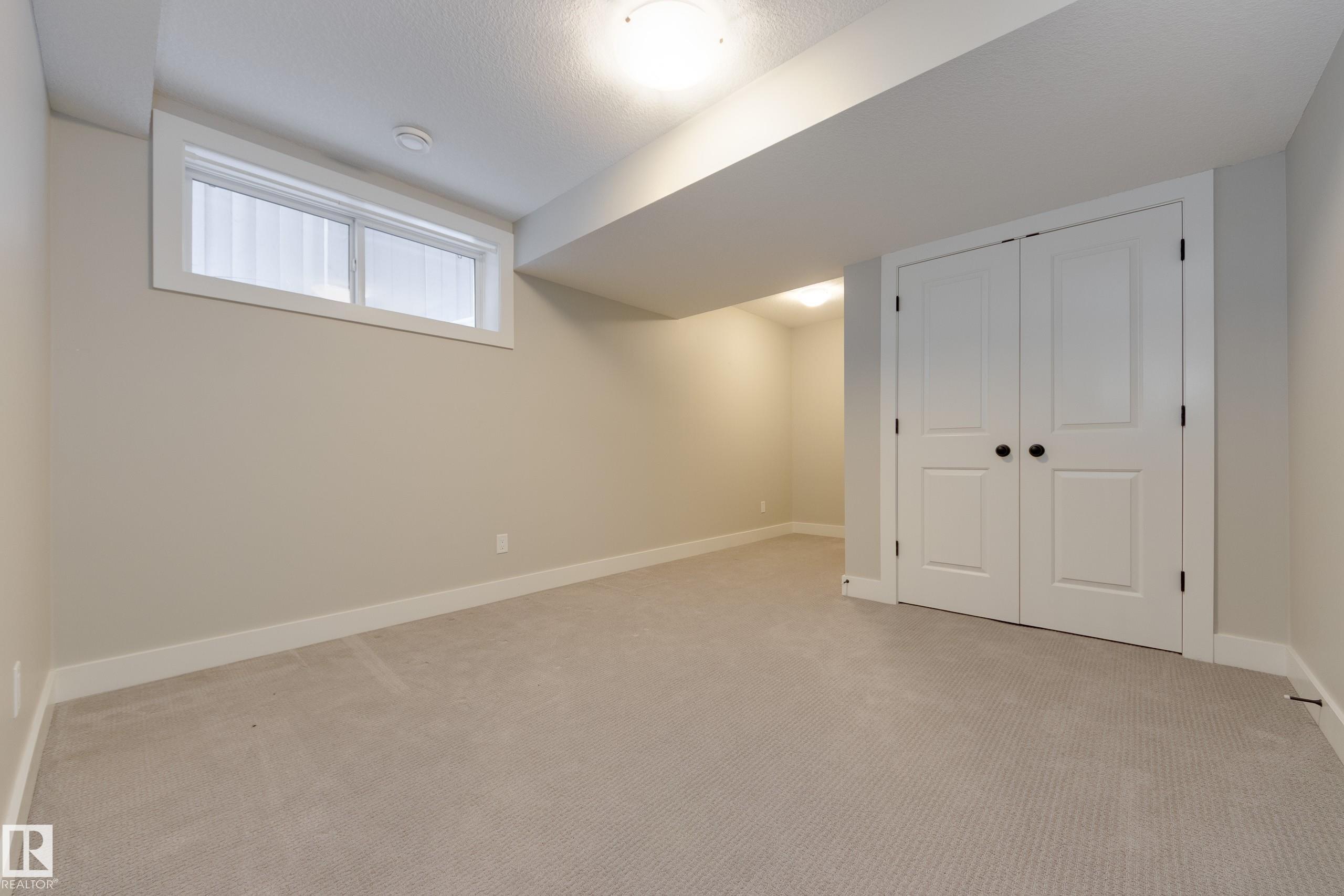 Stunning 5 bed, 3.5 bath home backing onto RCAF Playground Park. The open concept main floor offers connection and comfort with uninterrupted park views. Enjoy morning coffee and sunrises or warm summer evenings on the deck. Gourmet island kitchen has lots of cabinets and is adorned with quartz countertops, stainless appliances and a walk through pantry with laundry space. Curl up in front of the gas fireplace on cool evenings or entertain family and friends in the generous dining room. The primary retreat impresses with a spa inspired 5 piece ensuite including a tub, glass shower, dual vanities, water closet, and a huge walk in closet. You’ll also find 3 additional spacious bedrooms, a bright versatile bonus room and a 4 piece bath on this floor. On the lower you’ll find a 5th bedroom, 4 piece bath and a bright open rec area ideal for movie nights, play space or a home gym. Dble. oversized insulated garage offers more storage and parking. Griesbach, a community known for its parks, walkability, and charm