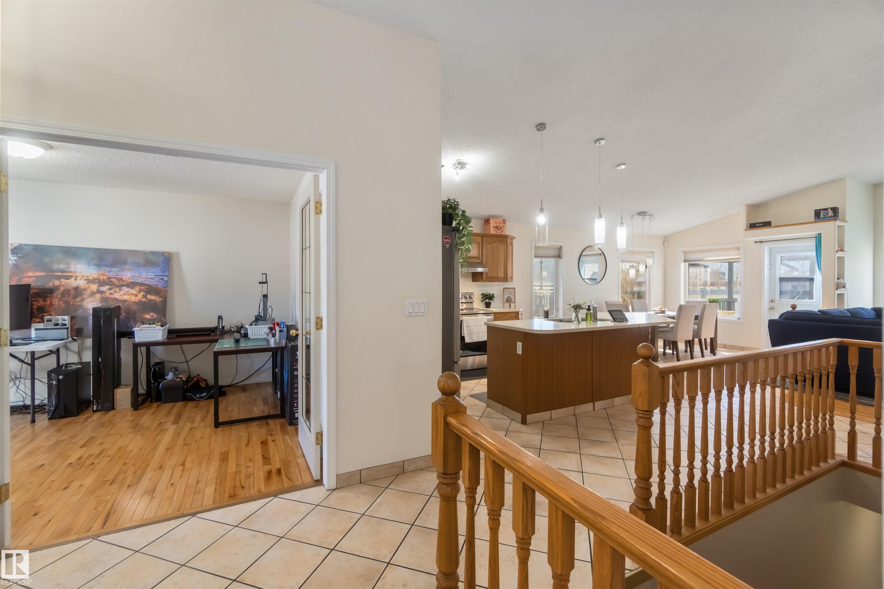 Welcome Home! This bungalow is a rare find that delivers the space and lifestyle your family has been looking for. An open-concept kitchen, living, and dining area, featuring stainless steel appliances, solid wood cabinetry, quartz countertops, a corner pantry, and an island with seating perfect for entertaining. Soaring ceilings and decorative ledges add character throughout, while a large front den offers the ideal home office or formal sitting room. Out back, enjoy summer on the deck under a gazebo, surrounded by mature fruit trees — a private, established backyard that’s perfect for summers outdoors. The fully developed basement adds two more bedrooms and a flex space perfect for a family room or kids' area, plus an updated full bathroom with red light therapy to help the whole family recharge. This well maintained home also features central air conditioning, an air cleaner and water softener. Close to the Henday and Yellowhead for an easy commute, with parks, schools, and street parking all nearby.