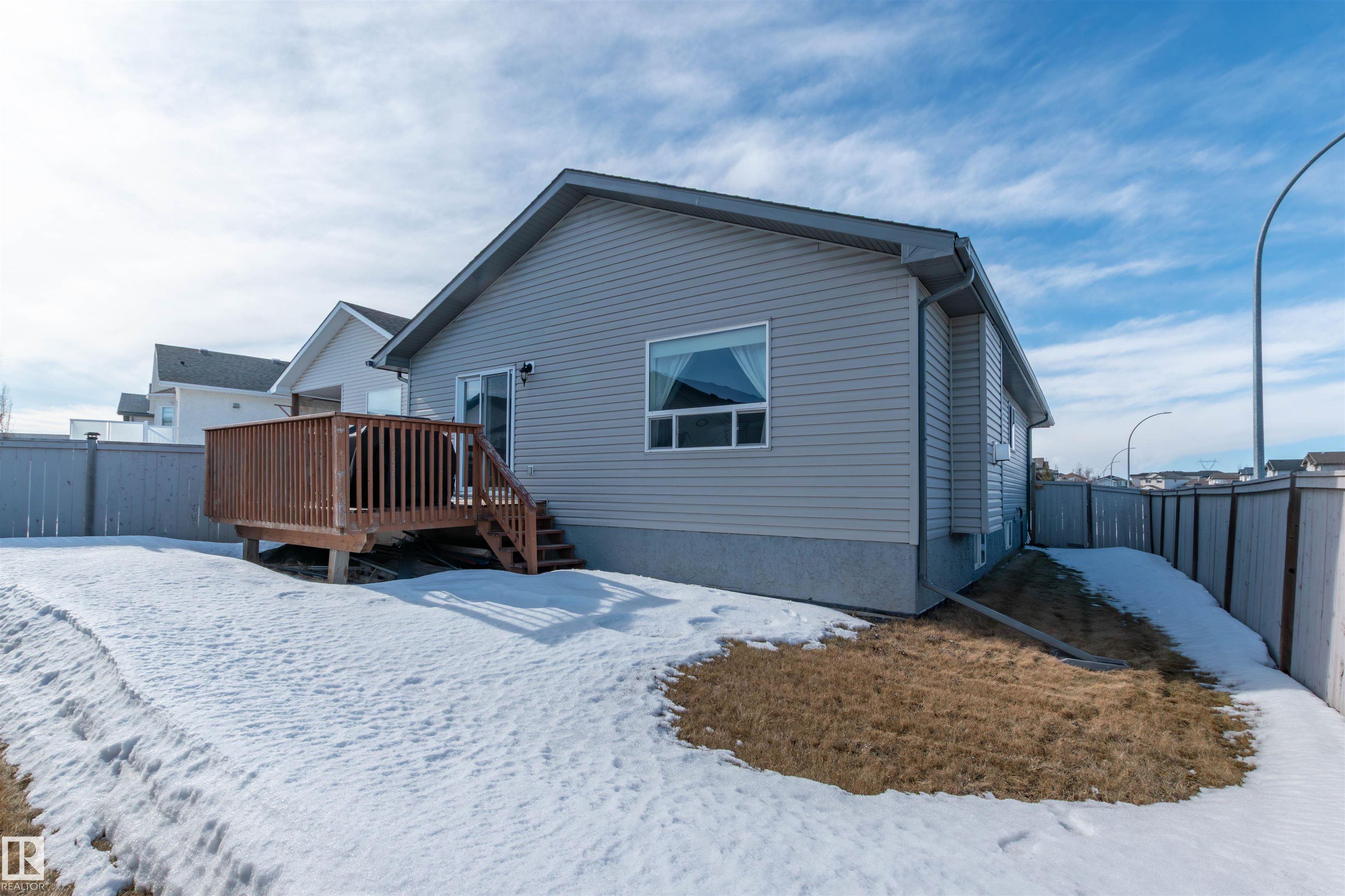 Beautiful 1,270 sq ft, wheelchair accessible bungalow located on a corner lot in desirable Hollick-Kenyon. This open and bright home features a spacious front entrance, vaulted ceilings, updated lighting, and laminate flooring throughout the main floor. The large living room offers a cozy gas fireplace, while the kitchen includes black appliances, ceramic tile, and a convenient corner pantry. The dining area features patio doors to a large deck overlooking a fully fenced backyard. There are 2 bedrooms and 4 pce bath on the main floor. The primary bedroom includes a walk in closet and private 4-pce ensuite, The fully finished basement offers high ceilings, large windows, a spacious recreation room, two additional bedrooms, and a large 3-pce bathroom with a double shower, seat, and rain shower. This home also features an attached oversized double garage. Ideally located close to schools, shopping, and Anthony Henday.