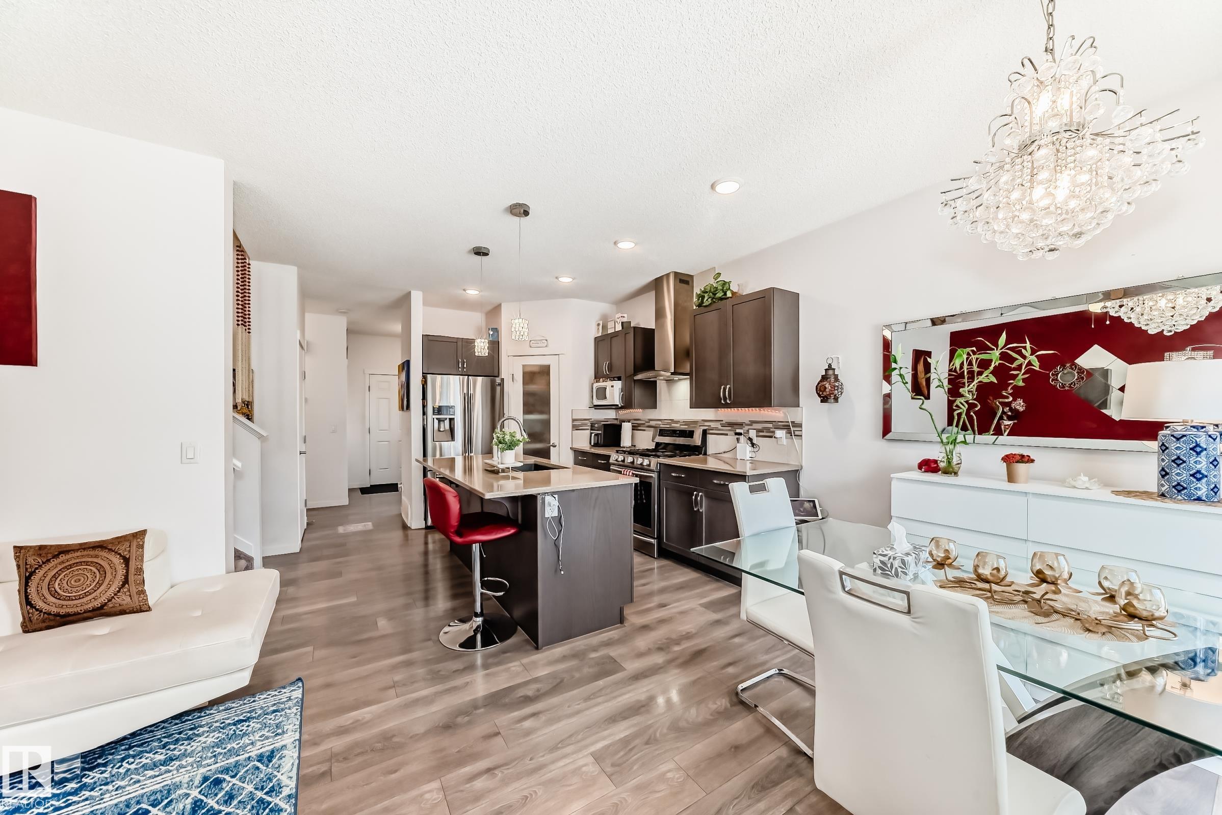 Welcome to this beautifully maintained duplex in the desirable community of Cavanagh! This well-designed home features 3 bedrooms, 3.5 bathrooms, & a fully finished basement. The main floor showcases a bright open-concept layout with 9 ft ceilings, a spacious living room, dining area, & a functional kitchen featuring quartz countertops, a gas stove, modern appliances, & a stylish glass door pantry. The upper level features a primary bedroom with a walk-in closet & private ens…uite, along with two additional bedrooms, a full bath, upper-floor laundry, & a bonus room for added convenience. The fully finished basement provides additional living space with a den, living area & full bath, ideal for guests. Enjoy the landscaped & fully fenced backyard with a large deck & no neighbours at the back for added privacy. Complete with a double attached garage & located close to schools, parks, public transportation, & shopping amenities—an excellent opportunity for first-time buyers in a family-friendly neighbourhood.
