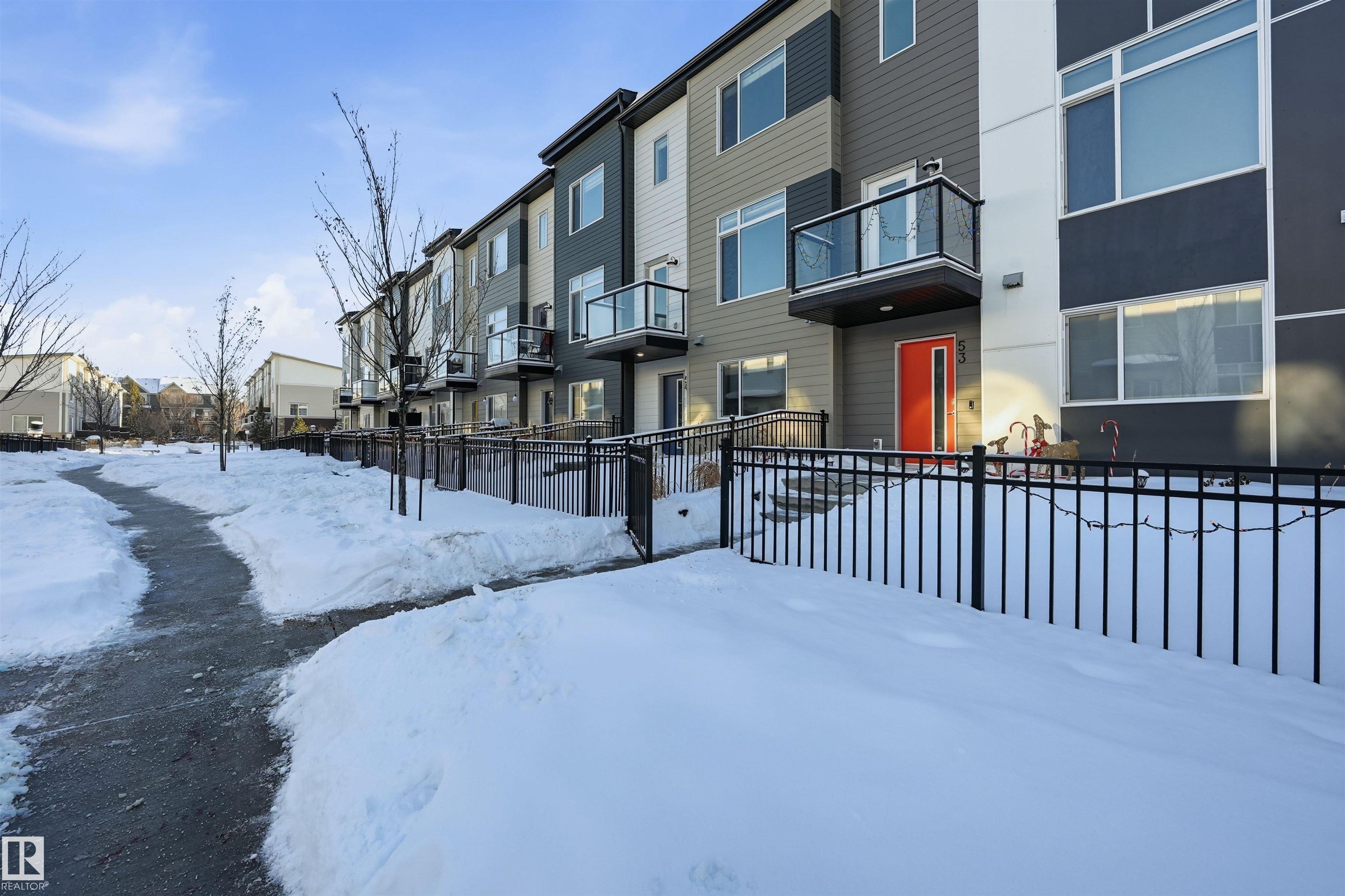 Bright, modern & spacious 3 bed/2.5 bath townhouse w/ double attached garage in the desirable Walker neighborhood. 1600 sf total living space. Perfect for 1st time home owners or investors! Main floor features 9' ceilings, vinyl plank floors & a roomy living rm filled with natural light. Kitchen offers a functional layout, stainless steel appliances, quartz countertops, tons of counter space, walk-in pantry, eating bar, & built in desk. Upper level also has 9' ceilings & larg…e primary bedrm w/ 3pc ensuite & walk in closet. Two other well sized bedrms, 4 pc main bath & laundry complete this level. Ground floor flex room w/ large window is perfect for an office, play rm, exercise area, or extra storage space! Energy-efficient mechanical including HRV & tankless hot water for a lower utility bill. This well maintained complex offers visitor parking and nearby walking trails & lake. Conveniently close to shopping, schools & public transit. Quick access to commuter routes incl Henday!