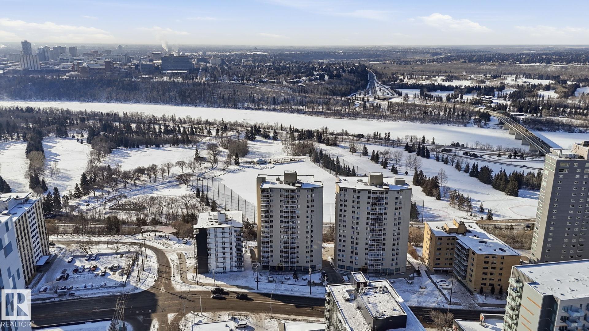 Enjoy breathtaking unobstructed panoramic views of the River Valley from this beautifully renovated 2 bedroom, 2 bathroom condo offering over 1,150SqFt of bright, comfortable living space. Recent updates include newer paint, flooring & appliances creating a stylish yet low-maintenance home. The bright & spacious living room flows into a formal dining area—perfect for relaxing or entertaining. Located steps from restaurants, shopping, parks, downtown & the vibrant 124 Street… district, with convenient access to public transit & both the U of A and Grant Macewan campuses, this home offers exceptional walkability & convenience. A rare find, you will enjoy 2 titled underground parking stalls with storage plus in-suite laundry! Additional highlights include excellent building amenities with a fully equipped fitness centre & sauna, library, social room, ample visitor parking & condo fees that include all utilities—making this a comfortable & worry-free lifestyle for students, professionals or downsizers alike!