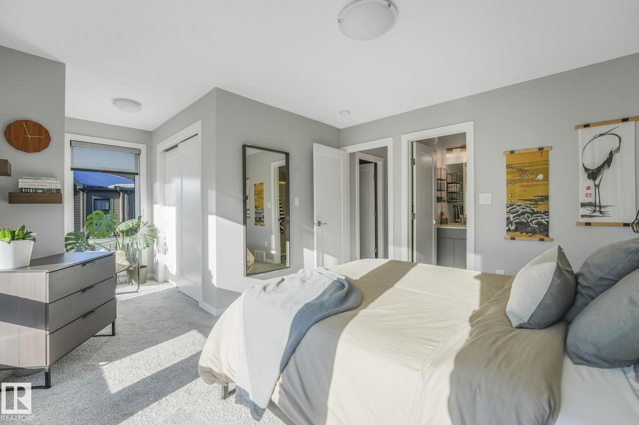 Upgraded SW facing corner unit in PIVOT by Averton! This stylish 3-storey townhome in sought-after Rutherford blends modern design with functional living. Enjoy abundant natural light from its desirable south-west exposure, large windows, 9' ceilings, and an open-concept layout perfect for entertaining. The gourmet kitchen has quartz countertops, upgraded stainless steel appliances, and ample cabinetry. Upstairs, you’ll find two spacious bedrooms, each with its own priv…ate ensuite, plus convenient upper laundry. Highlights include central air conditioning, custom window coverings, a sunny balcony, and a fully finished attached garage with storage. Set in a quiet, well-managed complex with low condo fees, steps to scenic trails, schools, parks, and minutes from shopping and the Anthony Henday. The end unit gives you more windows, more light, and less shared walls! A sun-filled, low-maintenance home designed for modern living in one of South Edmonton’s most convenient communities.