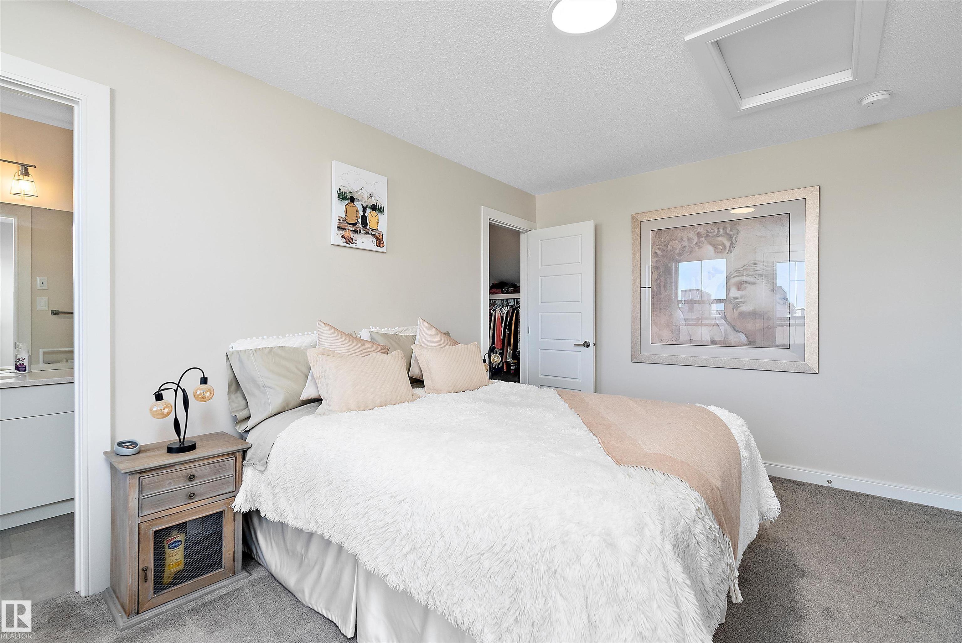 This one of a kind, energy-efficient custom 3-storey home in Edmonton’s award-winning Blatchford community offers environmentally conscious buyers a rare blend of sustainable living and unbeatable urban convenience, featuring geothermal heating and cooling, smart thermostats, and a thoughtfully designed layout that includes three true primary bedrooms, each with its own full ensuite and walk-in closet, plus a private rooftop patio for low-carbon outdoor living in the heart of the city; the main floor showcases 9-ft ceilings, a stylish galley kitchen and HUGE chef inspired island with custom cabinetry, quartz countertops, a coffee station, high-end smart stainless appliances, and a side-by-side pantry, complemented by custom iron railings and durable luxury vinyl plank flooring. Outside you’ll find a fully fenced, landscaped yard and a double detached garage, all just steps from the new LRT station and minutes to NAIT, Royal Alex, and the ICE District, with no condo fees or HOA fees.