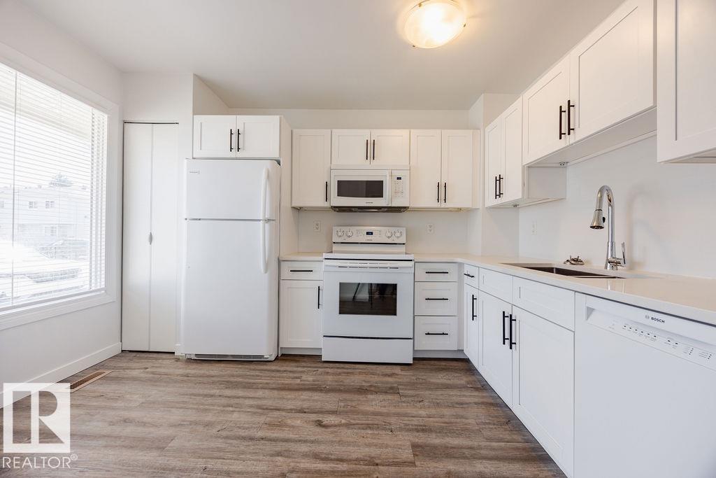 Great location! This desirable end-unit townhouse in Lincoln Park offers comfort and convenience. Featuring 3 bedrooms and 1.5 bathrooms, it was updated in 2019 with new kitchen cabinetry, quartz countertops, vinyl plank flooring, and upgraded bathroom cabinets and toilets. The bright kitchen offers ample cupboard space and a functional pantry. The main level includes a spacious living and dining area. Upstairs features a large primary bedroom with generous closet space, plus two additional bedrooms. Enjoy the convenience of two parking stalls right out front. Close to Broadmoor Lake, Broadmoor Golf Course, Sherwood Park Mall, the library, and more. This well-maintained, pet-friendly complex (with board approval) is a great place to call home.