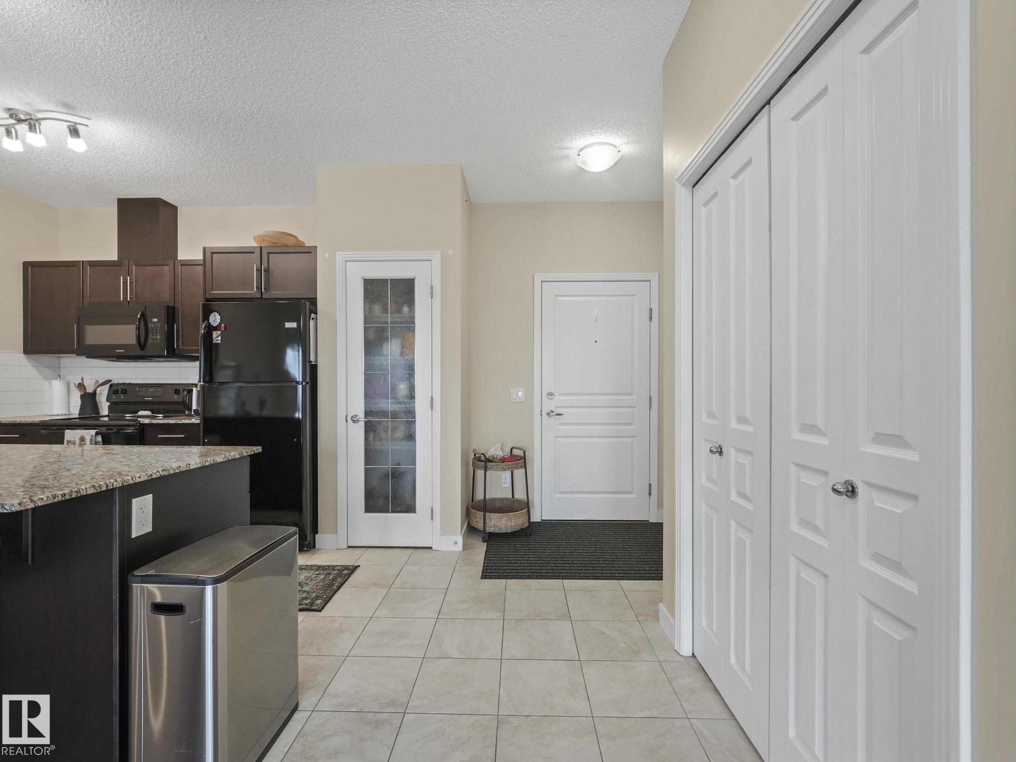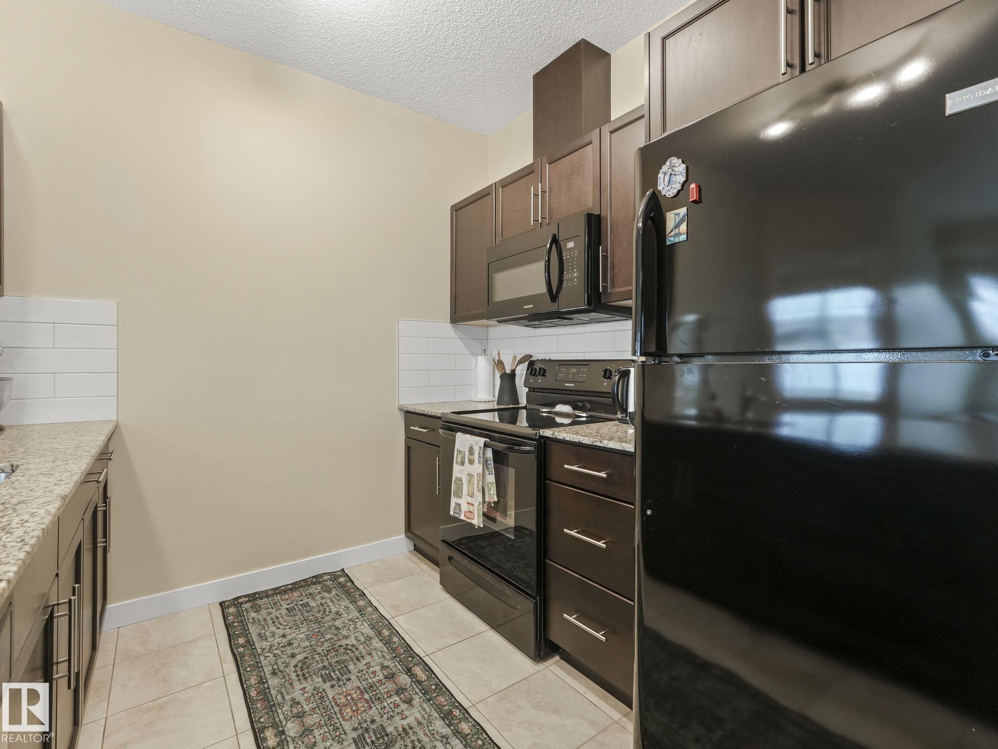 Welcome Home! Bright West facing TOP FLOOR unit in 10/10 condition! This 2 bedroom, 2 bathroom condo offers 871 square feet of living space with 9 foot ceilings and is flooded with natural light throughout. Open concept layout with a clean, modern kitchen featuring granite countertops, stainless steel appliances, espresso cabinetry and a quartz island. The living and dining area flows nicely to the sunny balcony, perfect for enjoying afternoon and evening sun. Truly a great layout with bedrooms on opposite sides for privacy. The primary bedroom fits a king bed and includes a walkthrough closet to a full ensuite. The second bedroom is a good size and is located right next to the second full bathroom. In-suite laundry with storage, a titled parking stall and a well managed building with low condo fees that include heat and water. Located close to walking trails, shopping, schools and all amenities. Shows immaculate, do not miss this one!