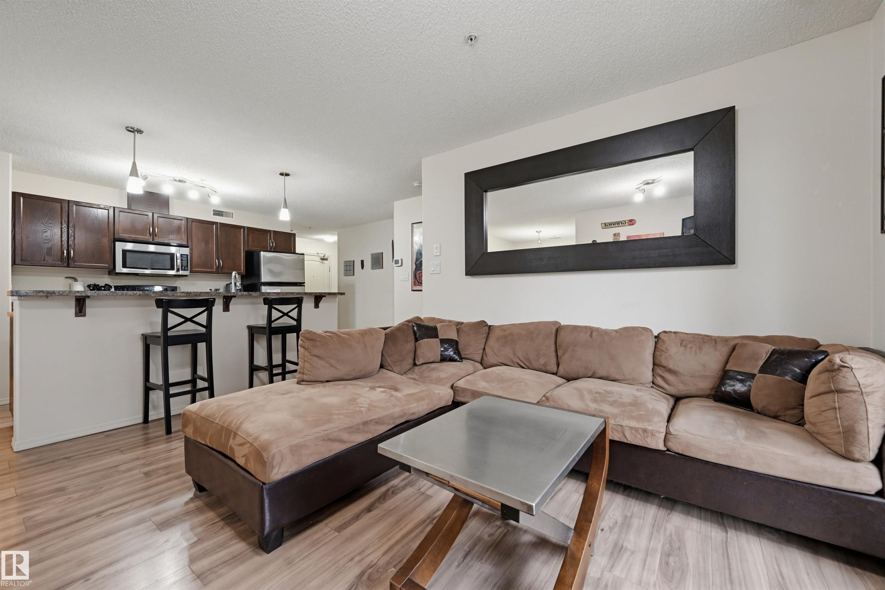 Welcome home to this modern, 2 bedroom 2 bathroom 947 sq.ft. OPEN CONCEPT CORNER UNIT in The Marquee at Terra Losa conveniently located close to shopping, schools, parks & transportation. This spacious, bright condo features a Chef's kitchen with espresso color cabinetry, stainless steel appliances & a raised eating bar. The living area has a corner gas fireplace with access to the WRAP-AROUND BALCONY with SOUTH & EAST exposures & a gas BBQ outlet. The bedrooms are on oppo…site ends of the living room to offer privacy. The spacious primary suite has a walk through closet to the 3 piece ensuite with a walk-in shower. The main 4 piece bathroom has a soaker tub. Laminate flooring throughout. Included is the fridge, stove, dishwasher & microwave (brand new), INSUITE WASHER & DRYER, window coverings & A/C. Also included are TWO TITLED PARKING (1 underground with a storage cage & 1 surface energized stall). A well maintained building with a fitness & social room + visitor parking. Pet friendly.