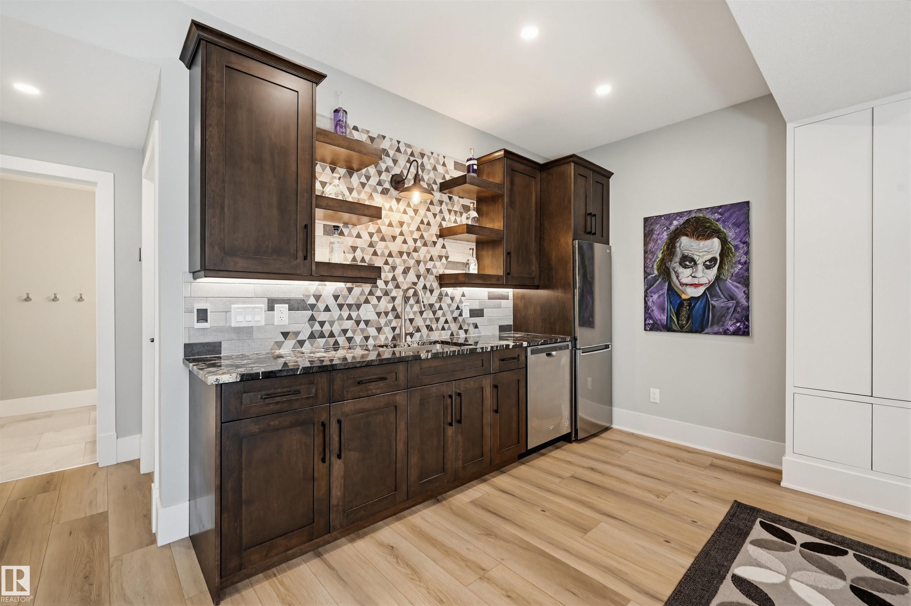 Built in 2022 and designed for busy family life and effortless entertaining, this stunning home offers over 3,800 sq.ft. of finished living space with 5 bedrooms, 3.5 baths, and a heated triple garage. Set on a quiet, tree-lined street, the open-concept main floor is made for gathering with a chef’s kitchen featuring a large island, quartz throughout, walk-in pantry, premium appliances, and seamless flow to the dining and living areas. The living room is filled with nat…ural light and anchored by a gas fireplace with tile surround. Step out to the covered deck with built-in BBQ, fireplace, and speakers—perfect for hosting year-round. A main floor office or guest room, spacious mudroom, and front veranda add everyday function. Upstairs offers 3 generous bedrooms, laundry, and a luxe primary retreat with vaulted ceilings, private balcony, and spa-like ensuite. The finished basement adds a large bedroom, full bath, wet bar, and rec room for movie nights, teens, or guests.